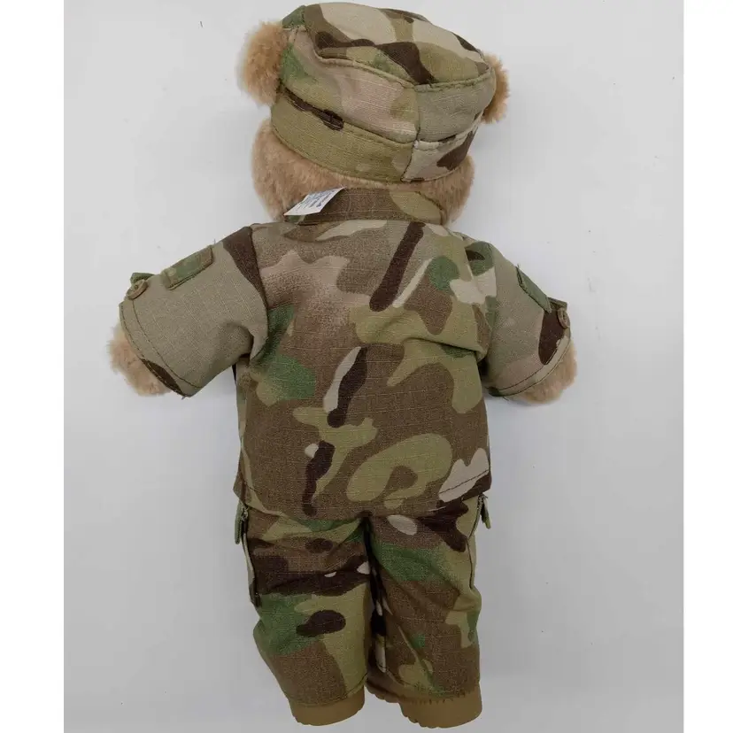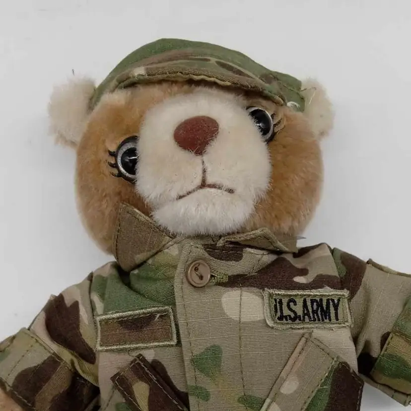 Here's an adorable female Army bear plush. She's 11 inches tall and in great condition. She's wearing camo with a US Army tag.