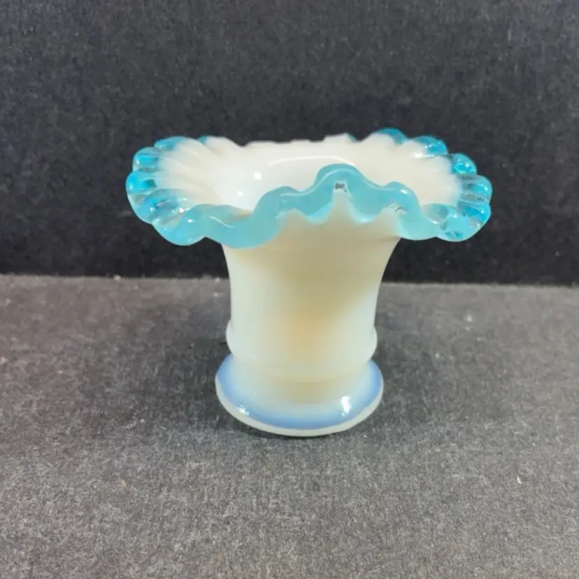 Fenton #37 Miniature Aqua Crest Vase Toothpick Holder Original Sticker HTF