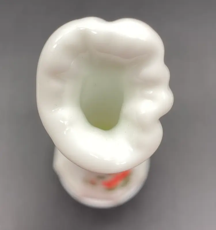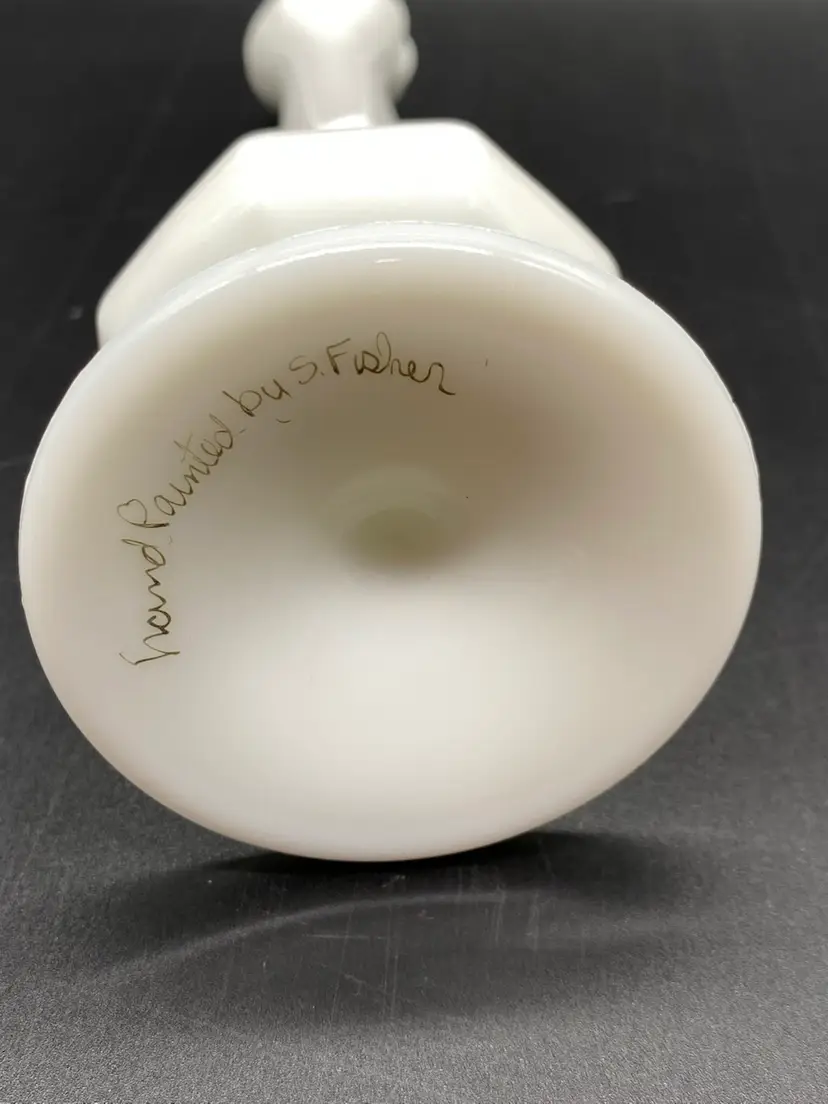 This is in very good condition. There are no chips, cracks or stains. It is beautifully painted with Coral colored Roses by artist S (Sharon) Fisher.