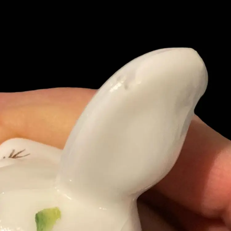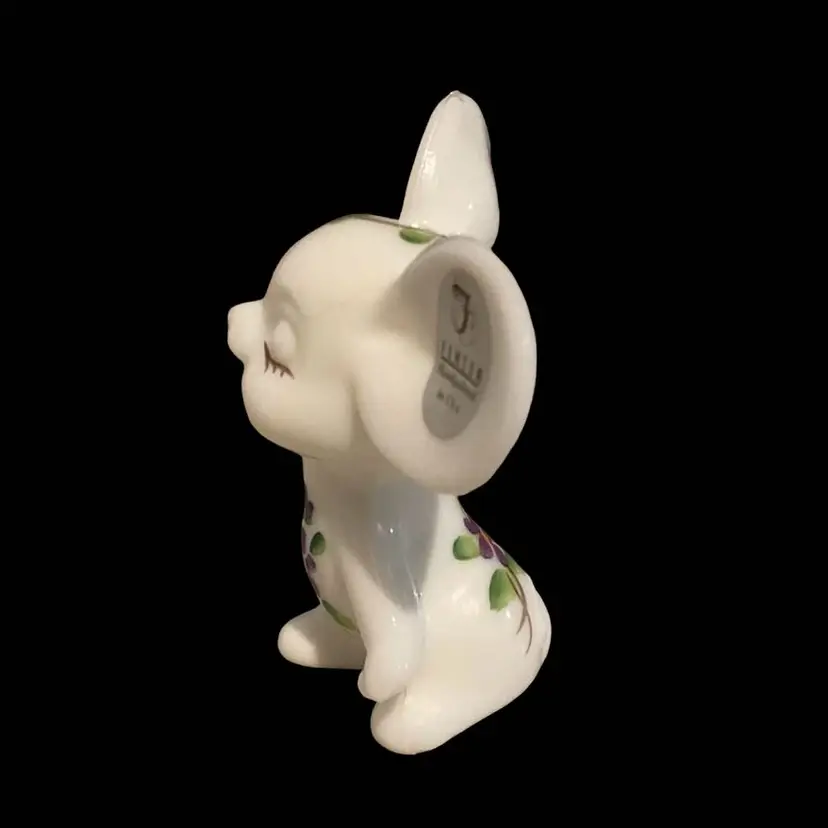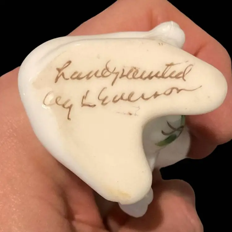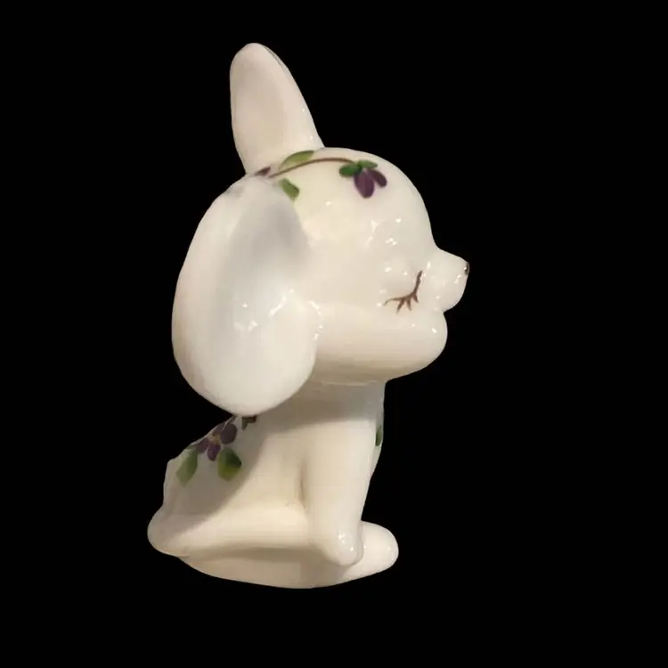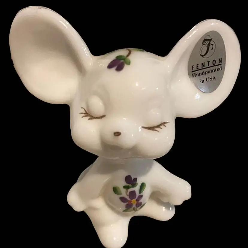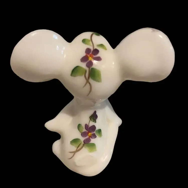 This guy is so sweet! Beautifully hand painted violets in the snow and signed. 3 inches tall. Tiny area to ear as shown; not sure if it’s a manufacturer defect or a tiny chip.