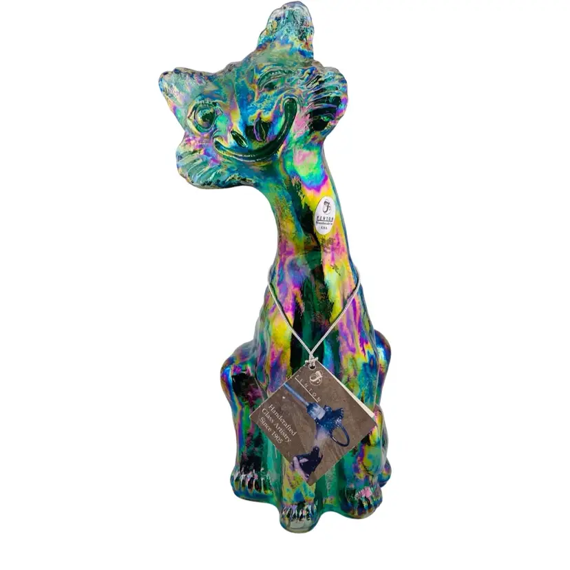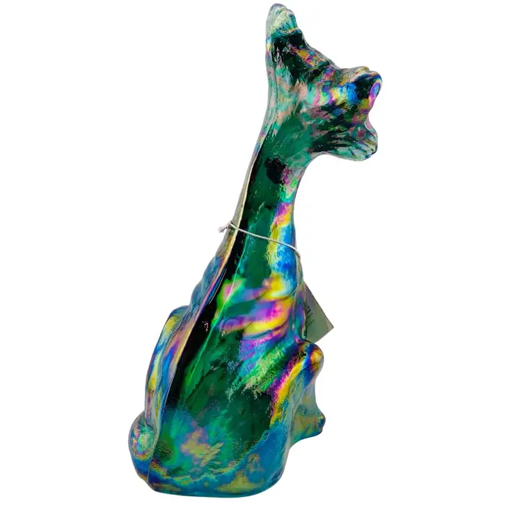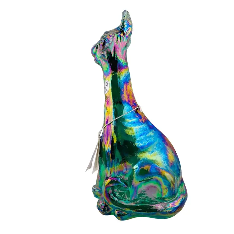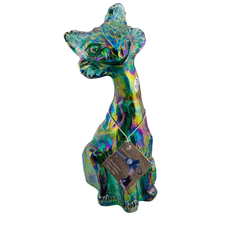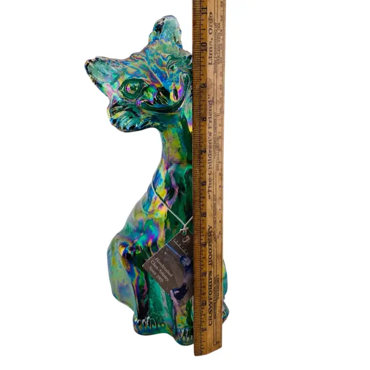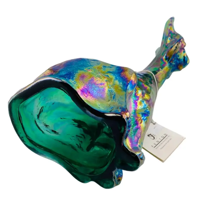 Fenton Alley Cat Happy Winking Green Iridescent Glass Original Tag and Label Sweet