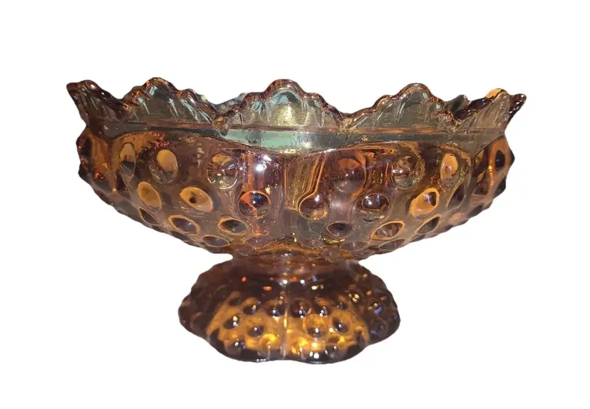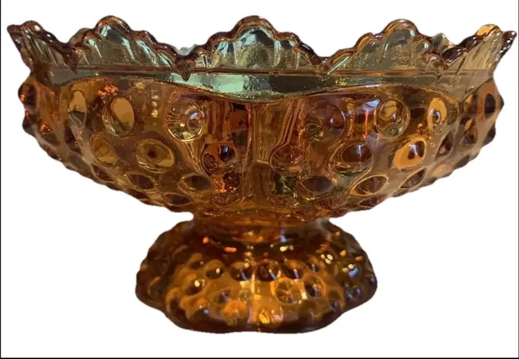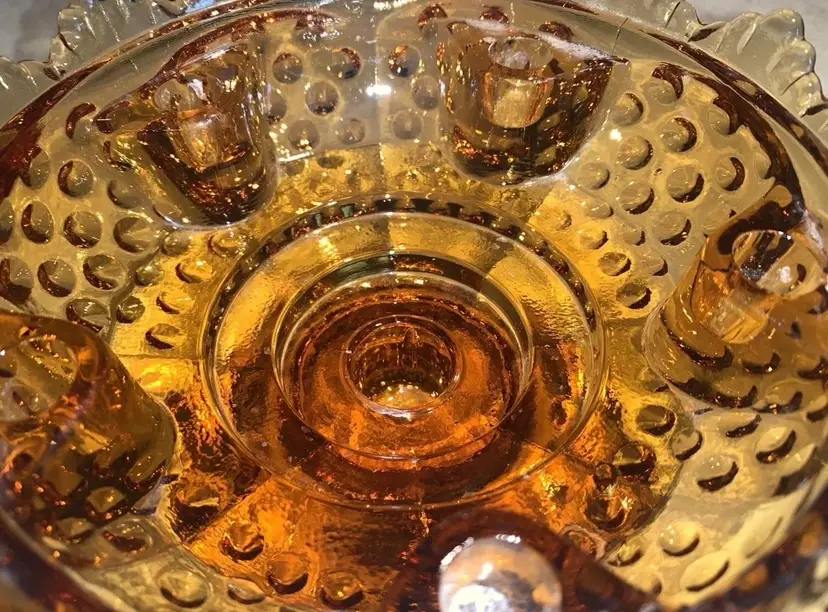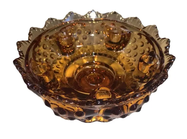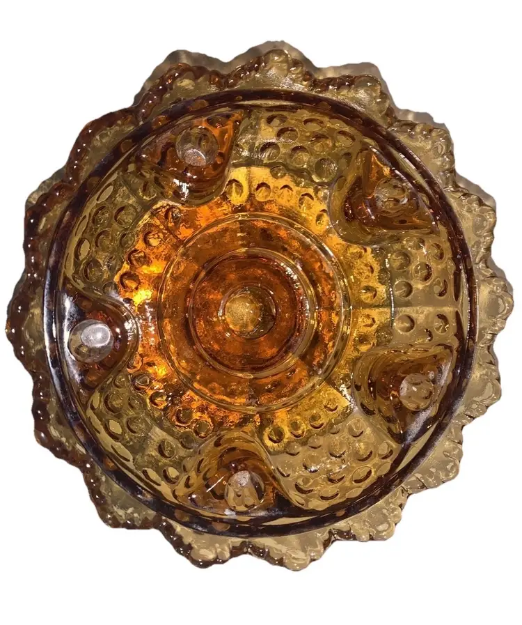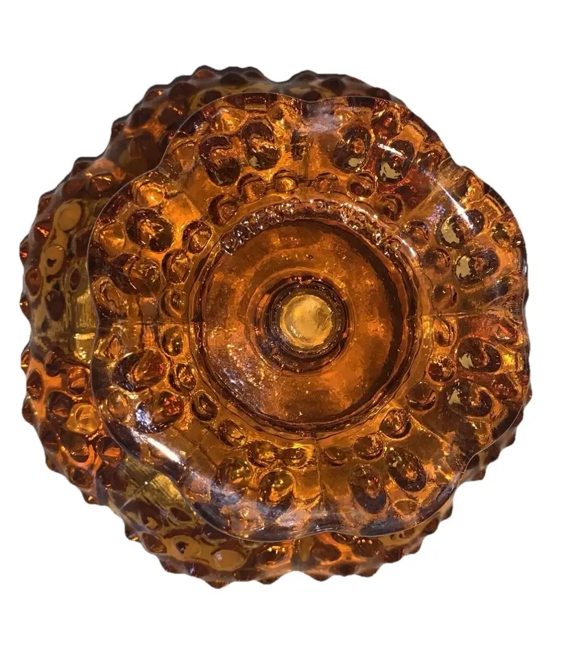 Fenton Amber Glass Hobnail Creative Candle Bowl Pedestal Candle Holder Vintage Holds 6 taper candles big one in the middle and 5 smaller ones around the inside diameter. Measures 6 5/8” in diameter and stands 3 3/4” tall