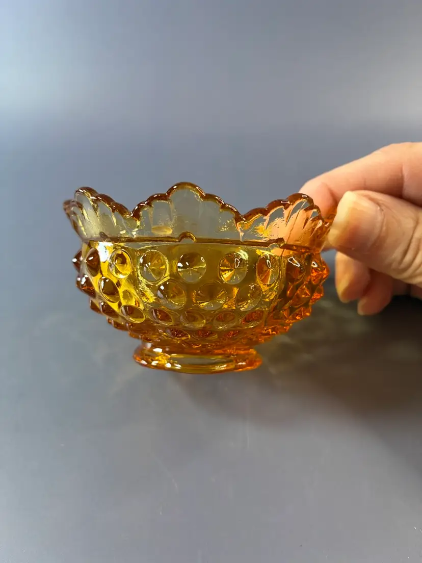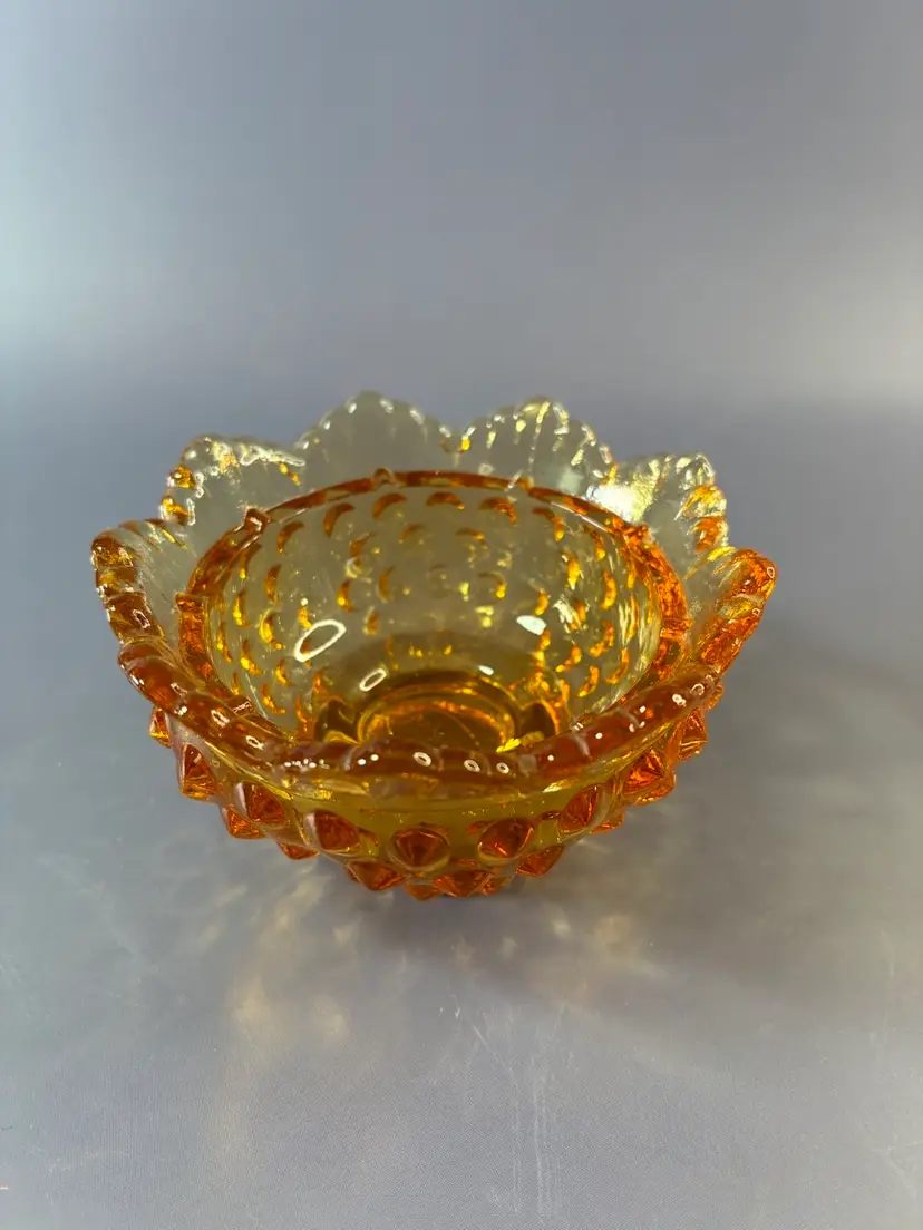 Fenton Amber Hobnail Fairy Lamp Base. Great For A Tea Light 2” X 3”