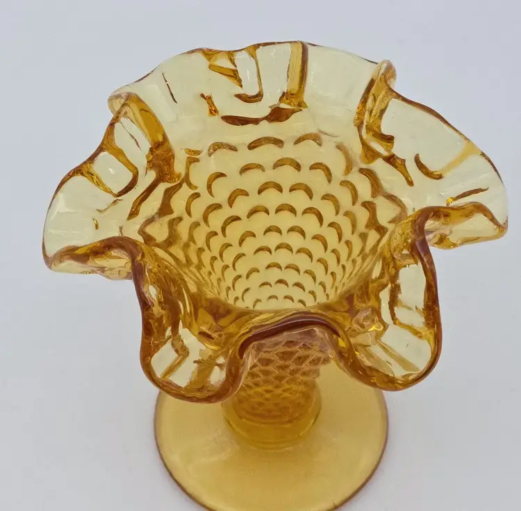 Fenton amber ruffled hobnail mini vase