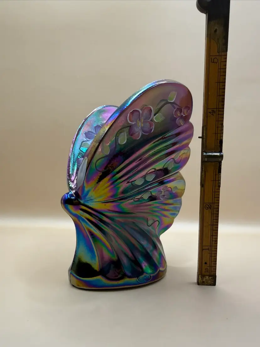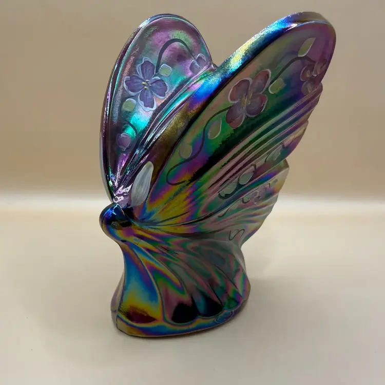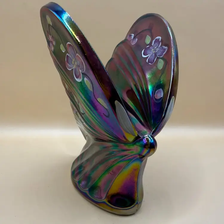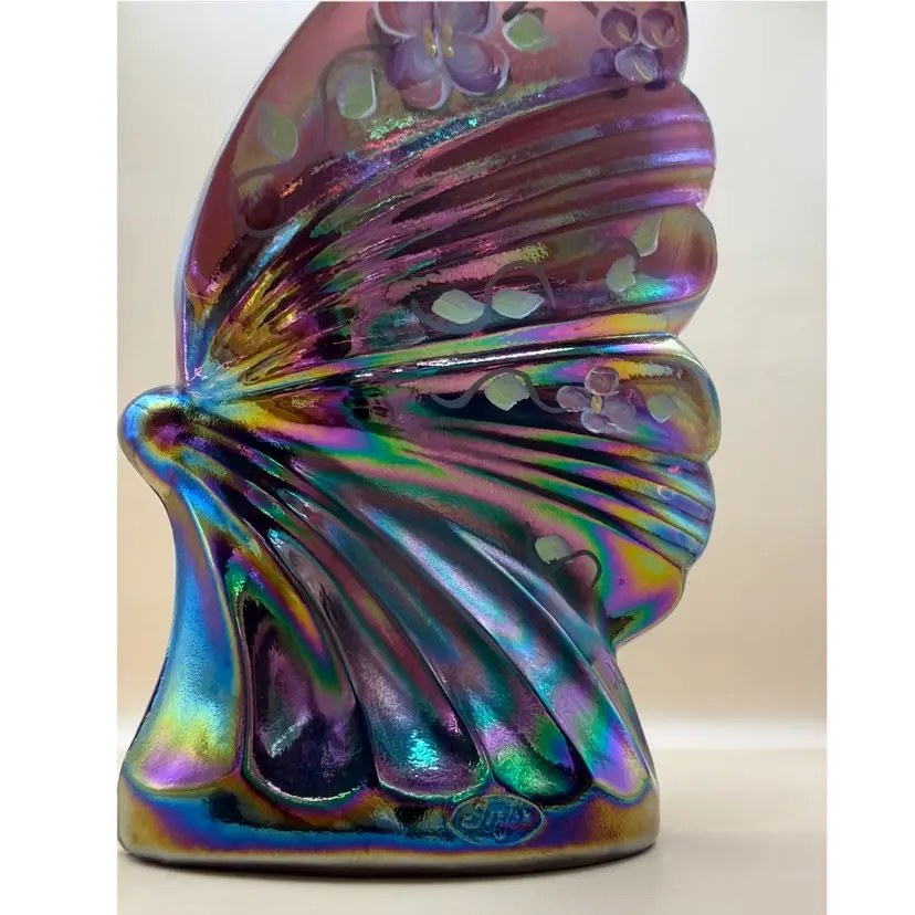 Excellent vintage condition. Stunning iridescence and lovely hand painting. This piece was made exclusively for the 2002 Fenton Art Glass Collectors of America Convention. Spectacular addition to your collection .