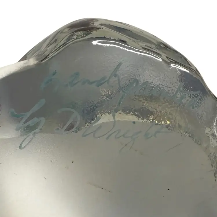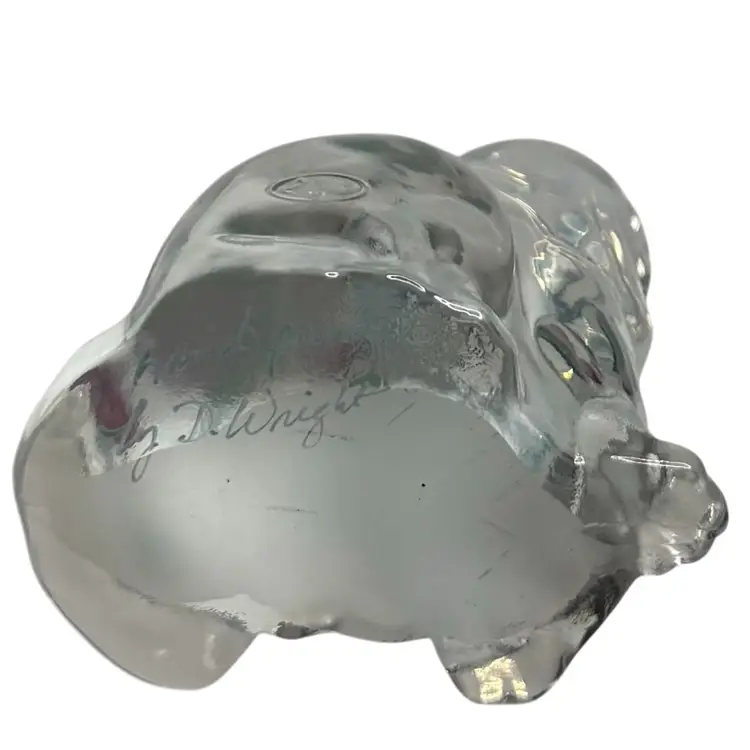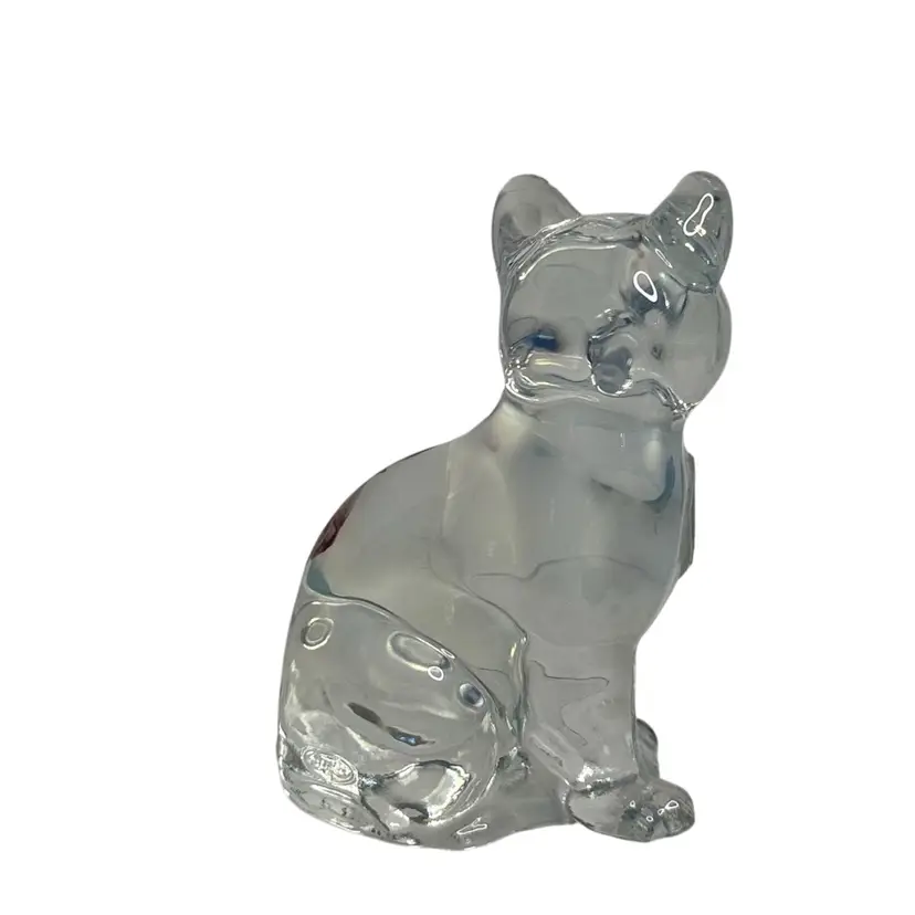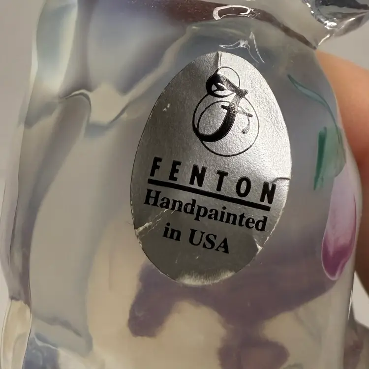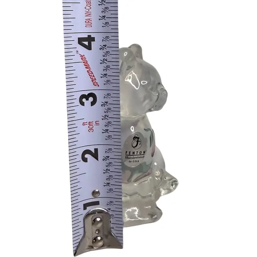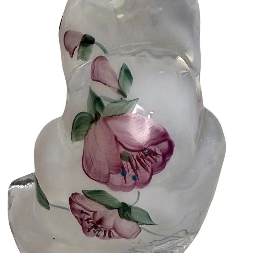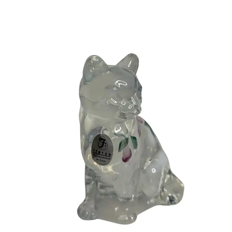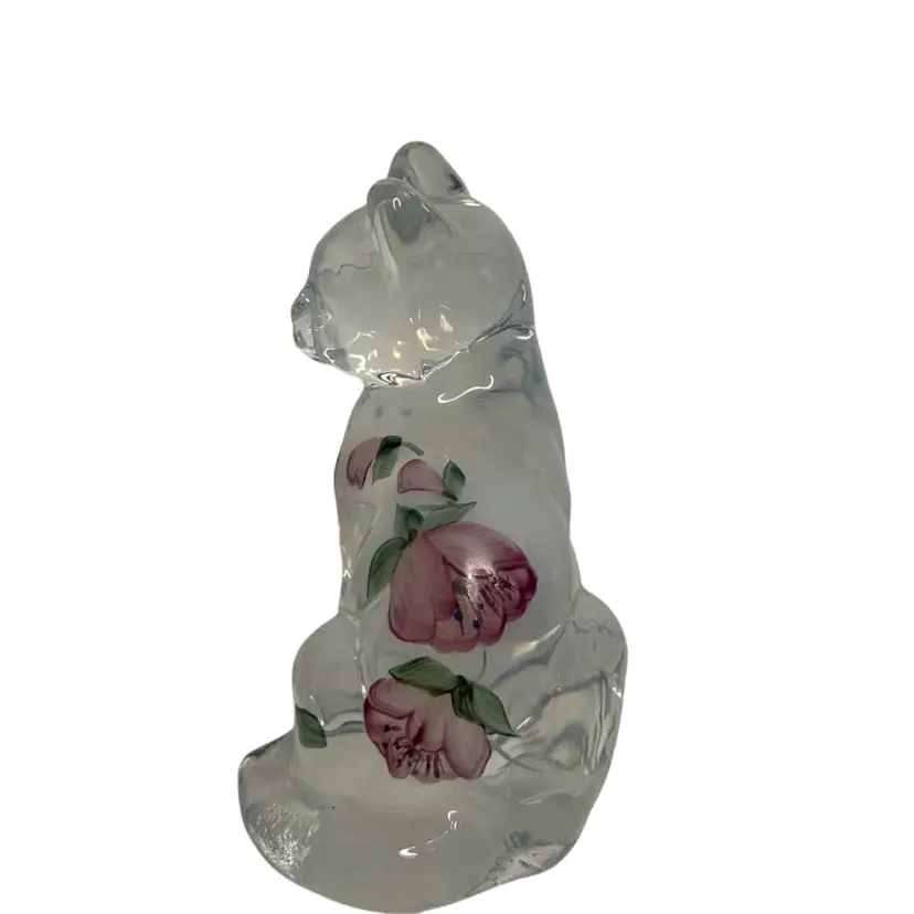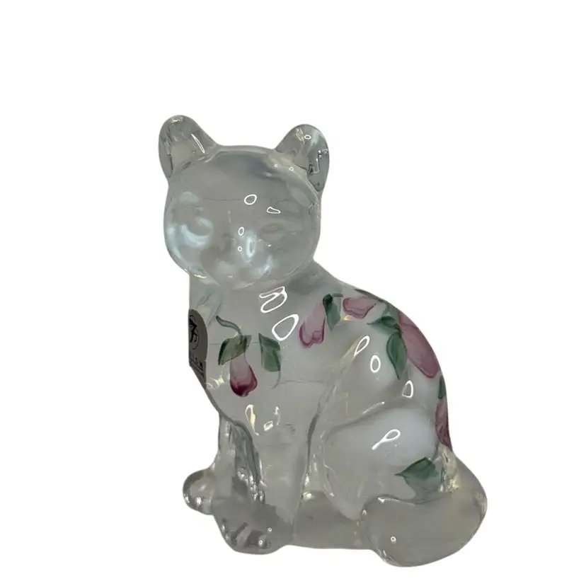 Fenton Art Glass Cat Opalescent Clear Hand-painted Florals Signed D. Wright and Fenton label.