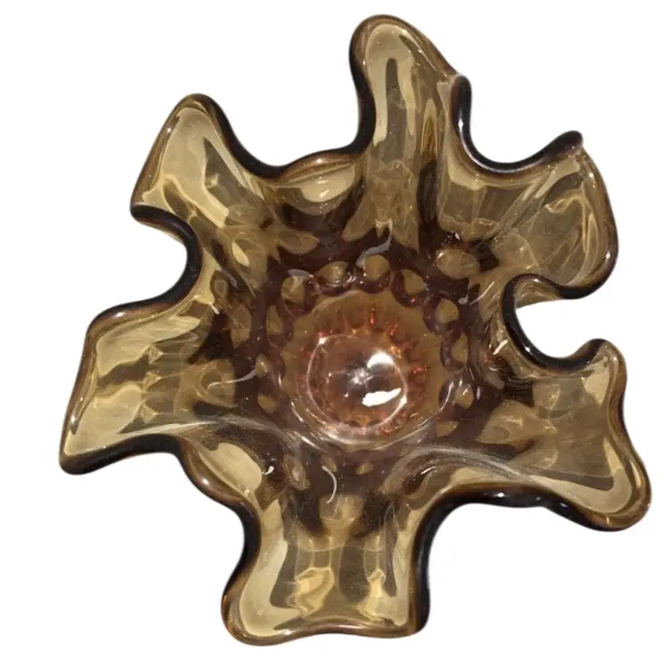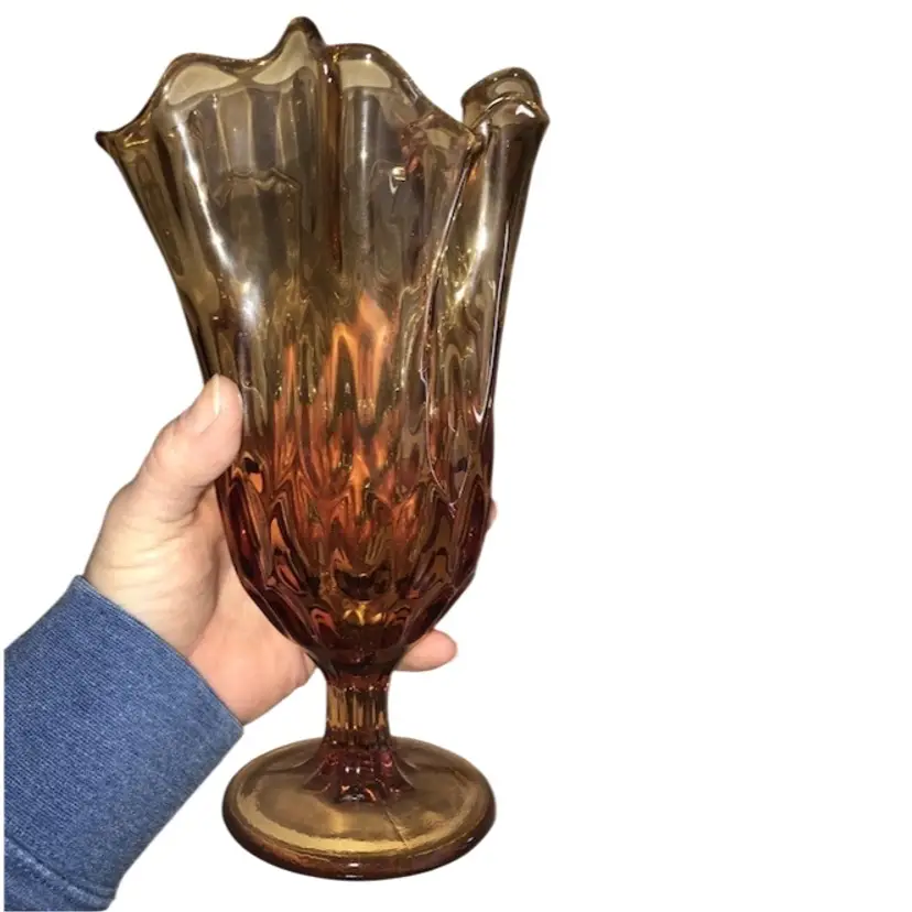 Fenton Art Glass Colonial Amber Stretch Thumbprint Handkerchief Vase 9” Compote 5.5”-6” diameter No issues Confirmed Fenton on a FB Fenton Buy & Sell group