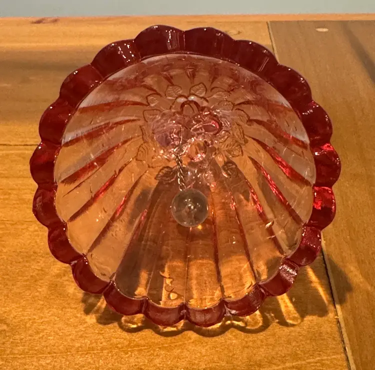 The Fenton Art Glass Empress Rose Heart Bell with Raised Roses is a beautifully crafted decorative bell made of Empress Rose glass. With a delicate heart pattern and raised roses, this bell exudes a feminine and elegant charm. The Fenton brand is known for its art glass production style, making this piece a unique and collectible addition to any pottery and glassware collection. Perfect for those who appreciate intricate designs and timeless beauty, this bell captures the essence of a rose in a stunning visual display.