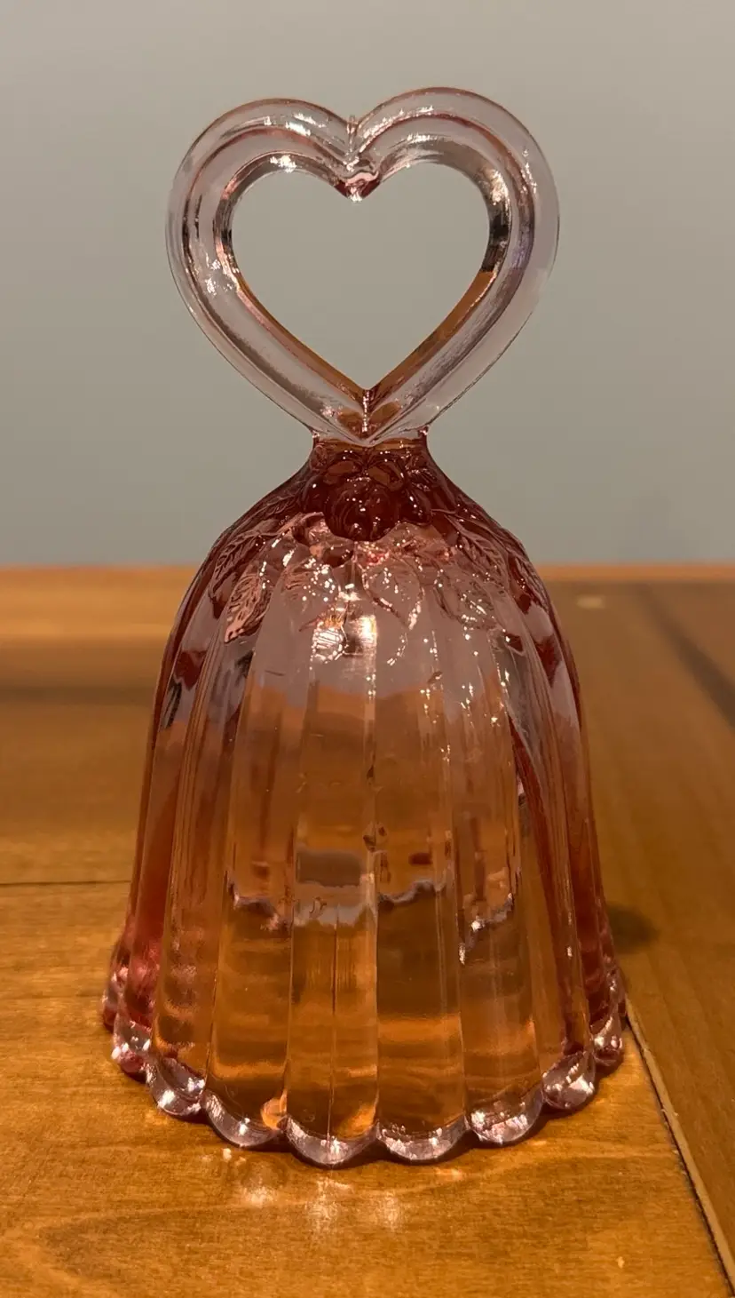 Charming glass bell with a heart-shaped handle. Ideal for decor or collection.