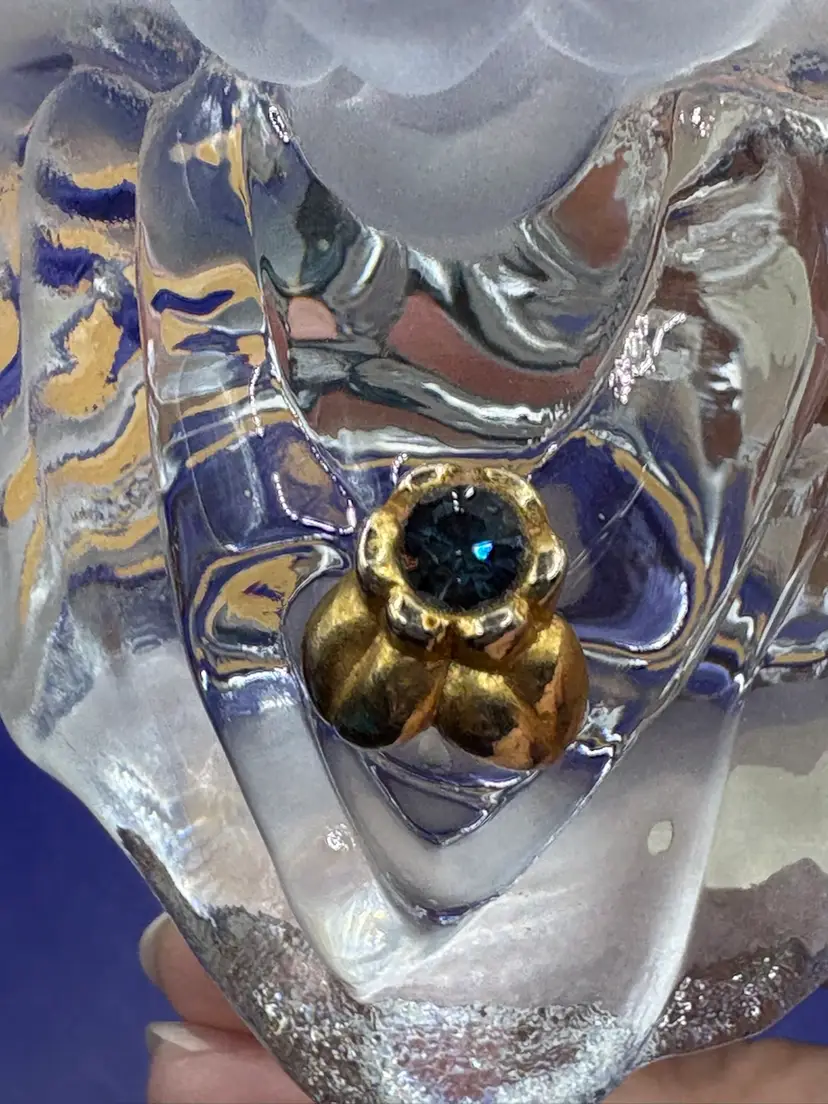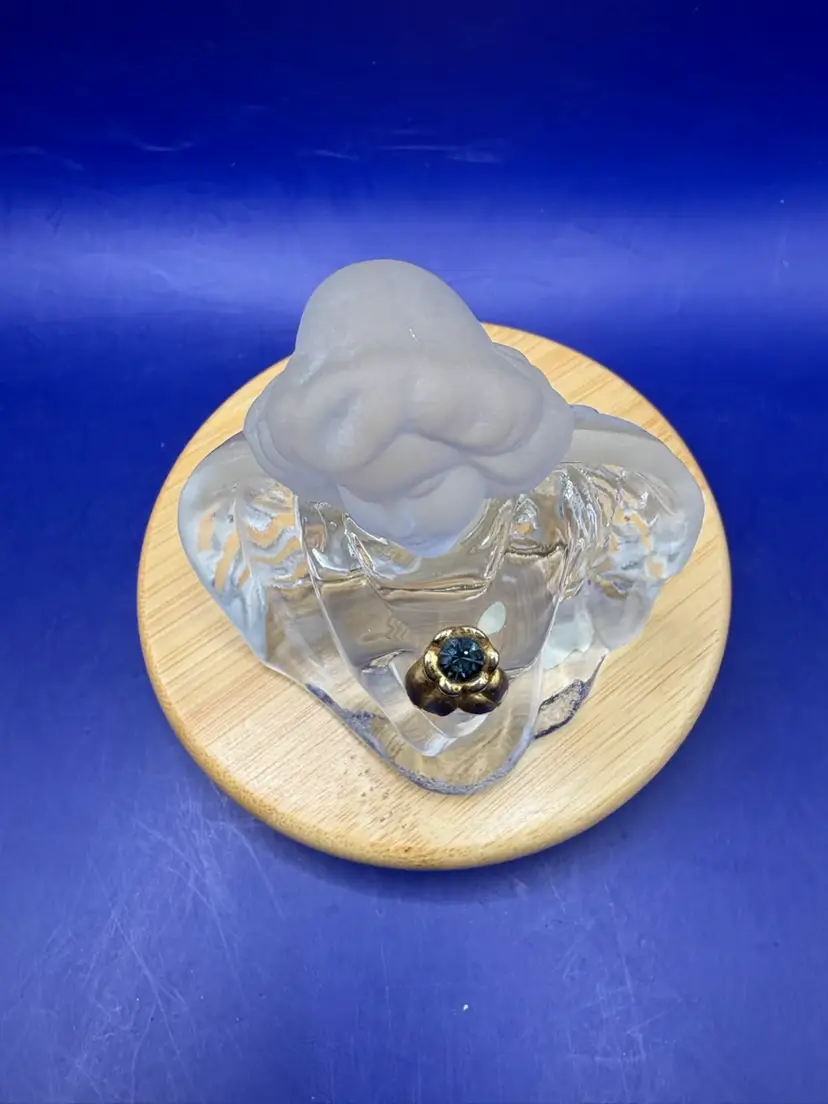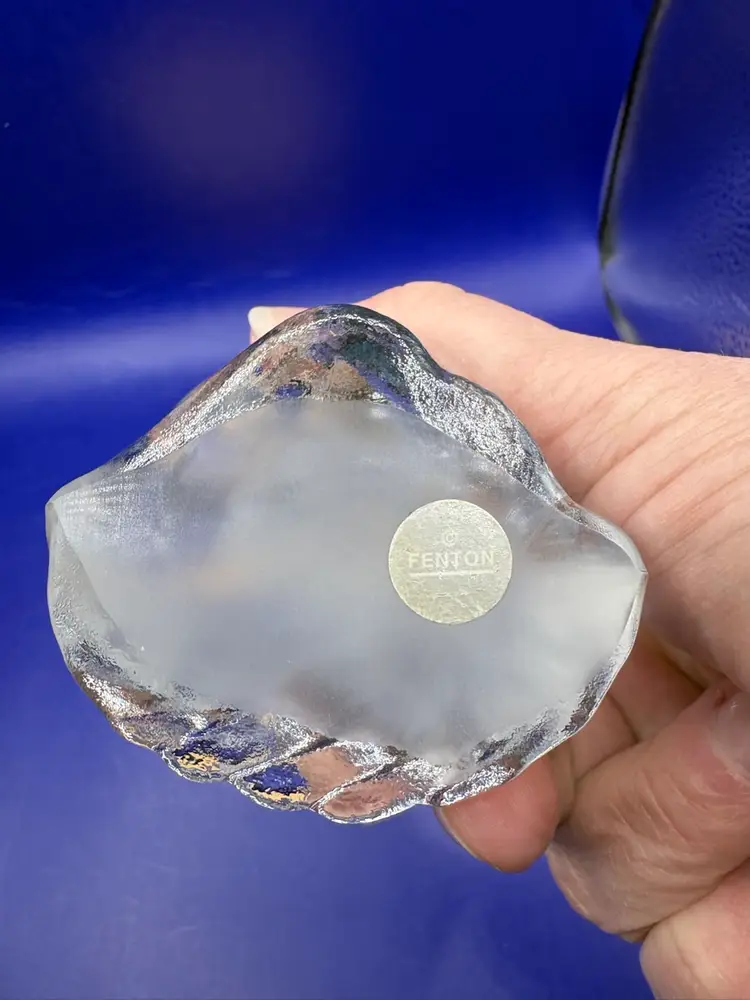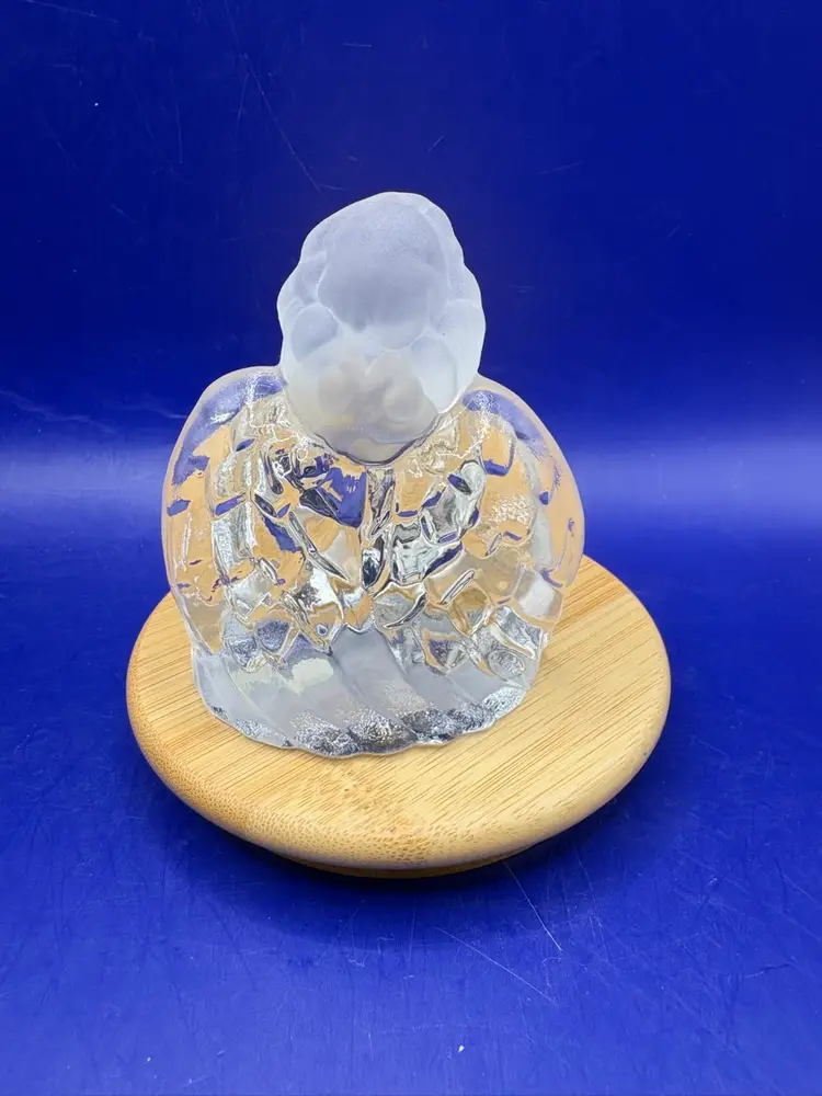 Fenton Art Glass Guardian Angel Blue birthday stone for September - Sapphire Blend of clear and frosted glass Measures 3 1/4 inches tall by 2 5/8 inches wide In excellent condition