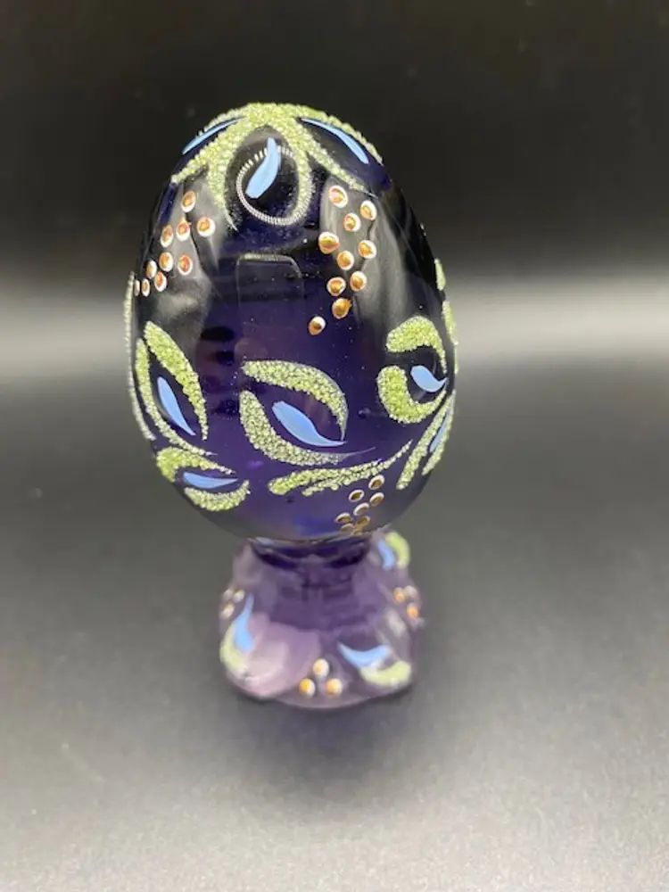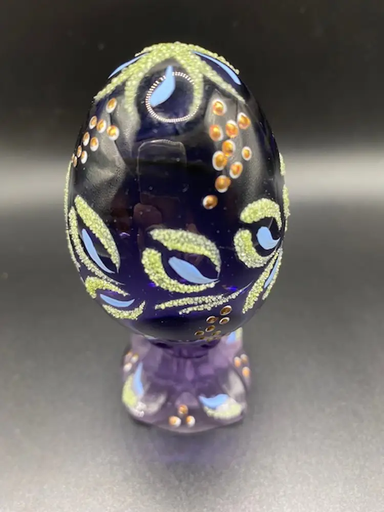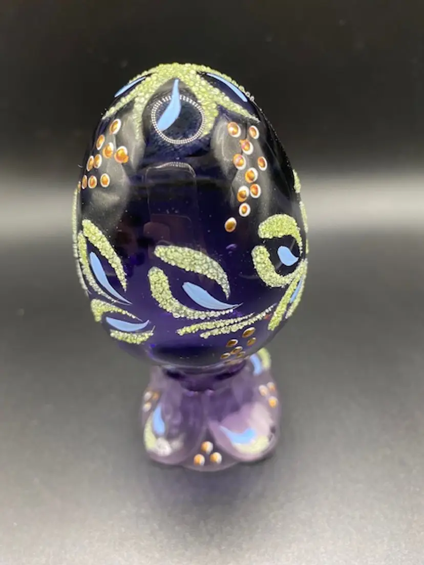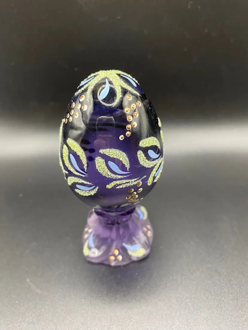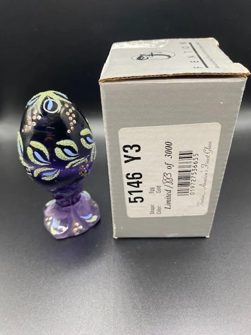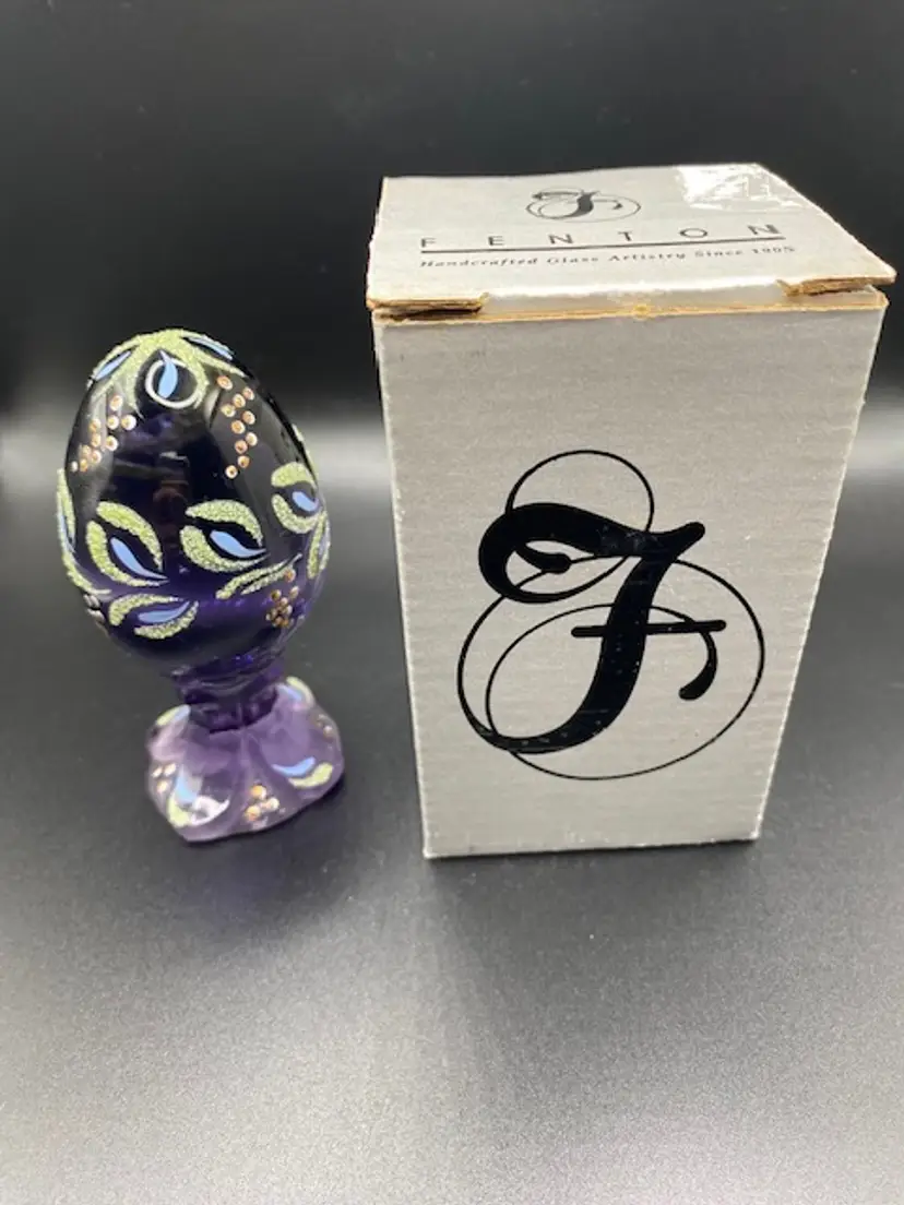 Beautiful hand painted limited edition Fenton egg. Egg is approximately 4" tall by 2" wide and it comes with the original box.