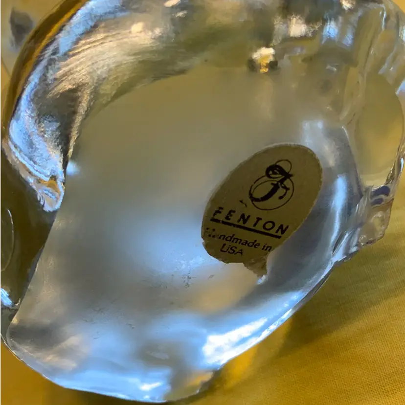 In great vintage condition. Please review photos Vintage 1990s The Fenton Art Glass Co - Clear Glass Raccoon Paperweight