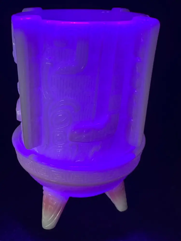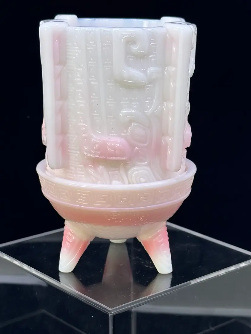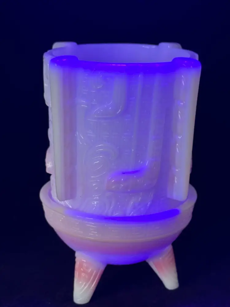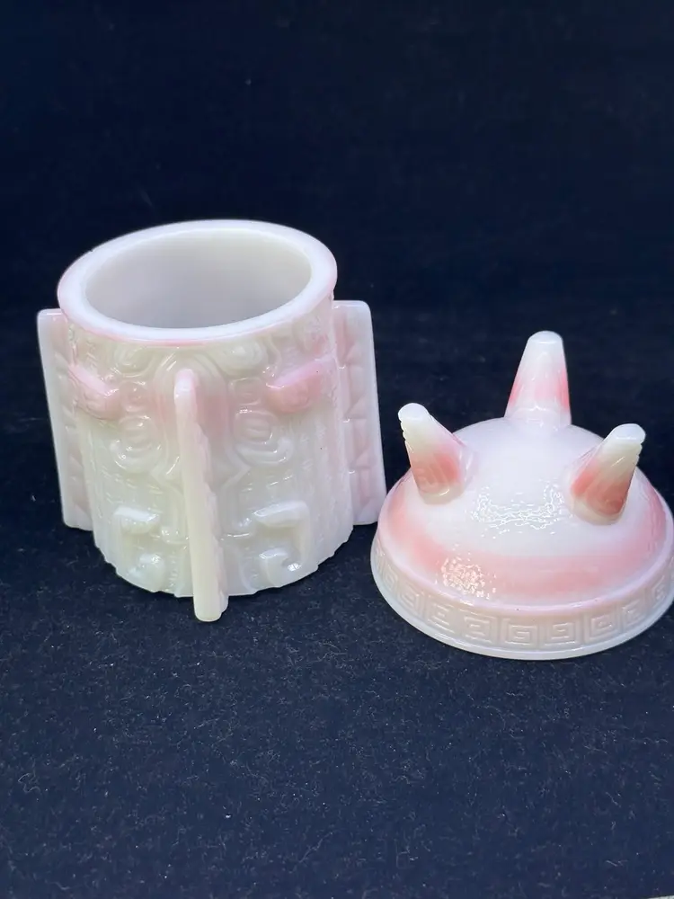 This beautiful Fenton Fairy Light Rosalee Chou Ting Ceremonial candle holder is a stunning addition to any collection. The multicolor glass and intricate fairy design make it a unique and eye-catching piece. It was created using fused glass production technique by North American artists in the 1970s, adding to its historical and artistic value.