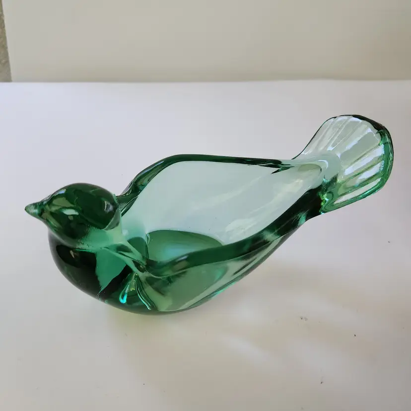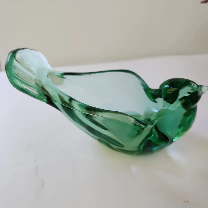 Fenton Art Glass Sea Mist Green Open Bird Votive Candle Holder Dish.