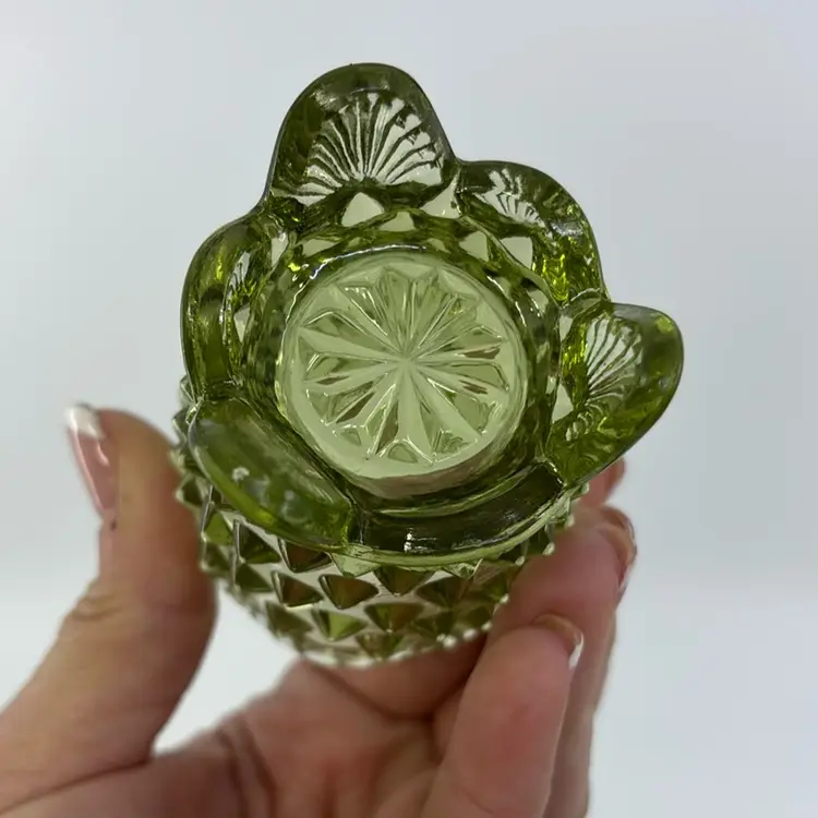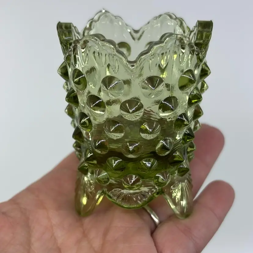 Fenton Avocado Green Hobnail Art Glass Toothpick Holder 3โ€
