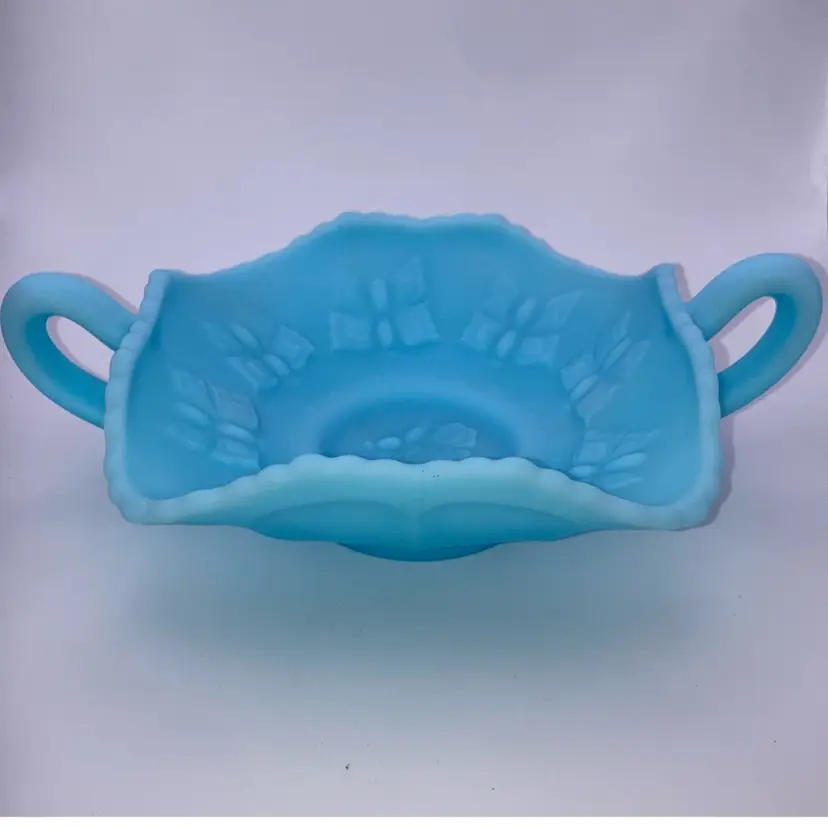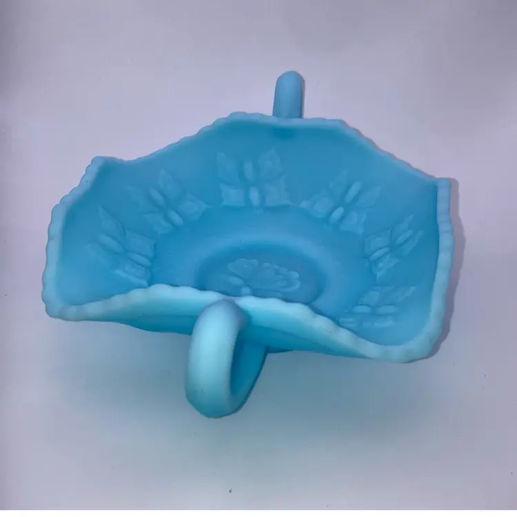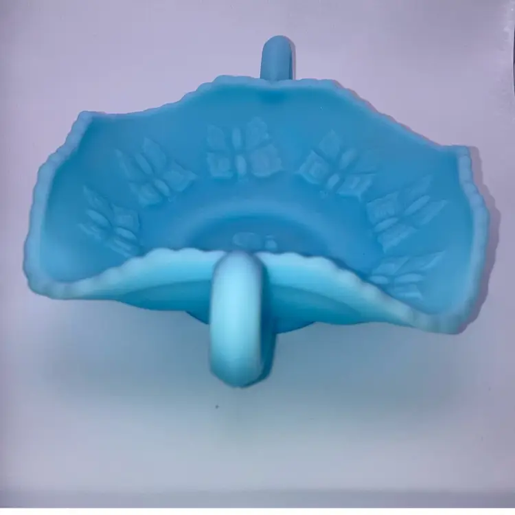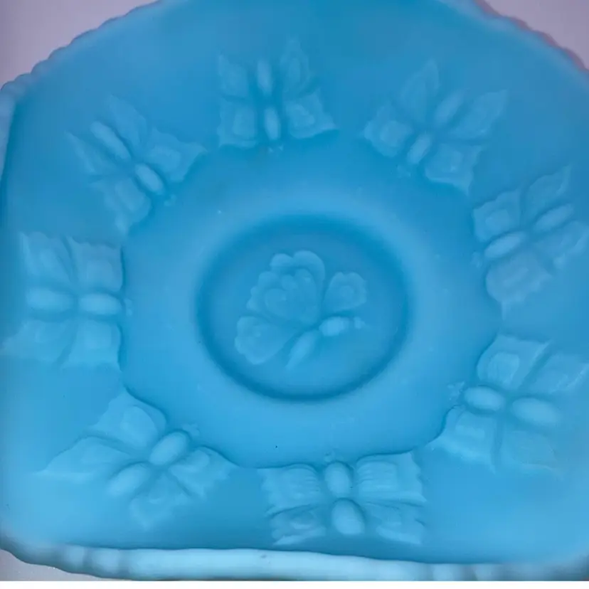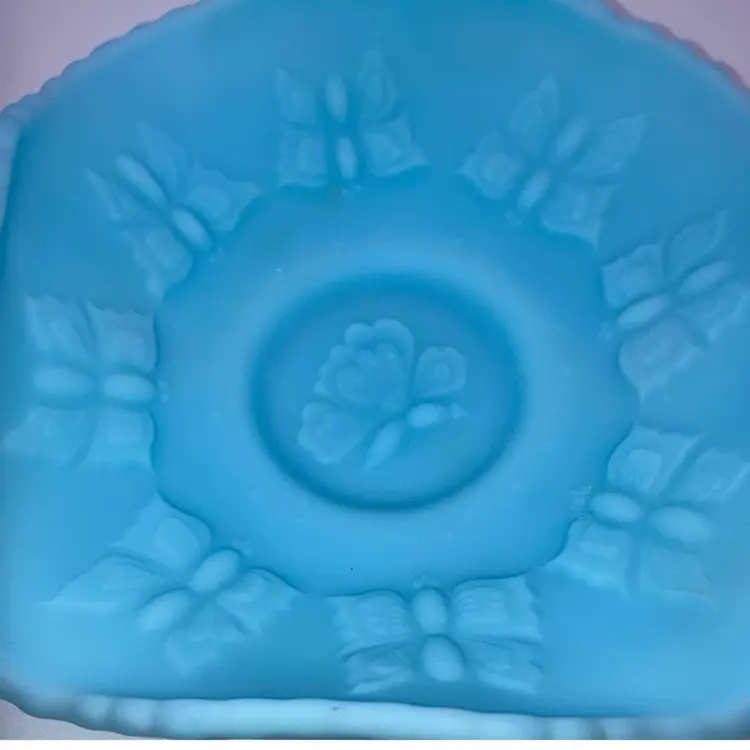 Beautiful Fenton Blue Butterfly Dish 2β Tall 8β Wide NO chips, cracks or flea bites! New to District? Enter code Michel42 into your wallet prior to your first purchase and save $5 off of $10 or more purchase! Thank you for taking a look at my items! Click my Follow Button and I'll Follow you back! Happy Shopping!