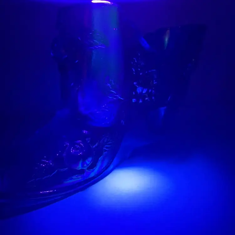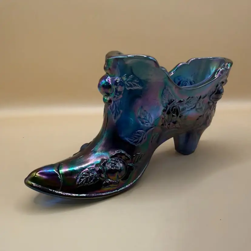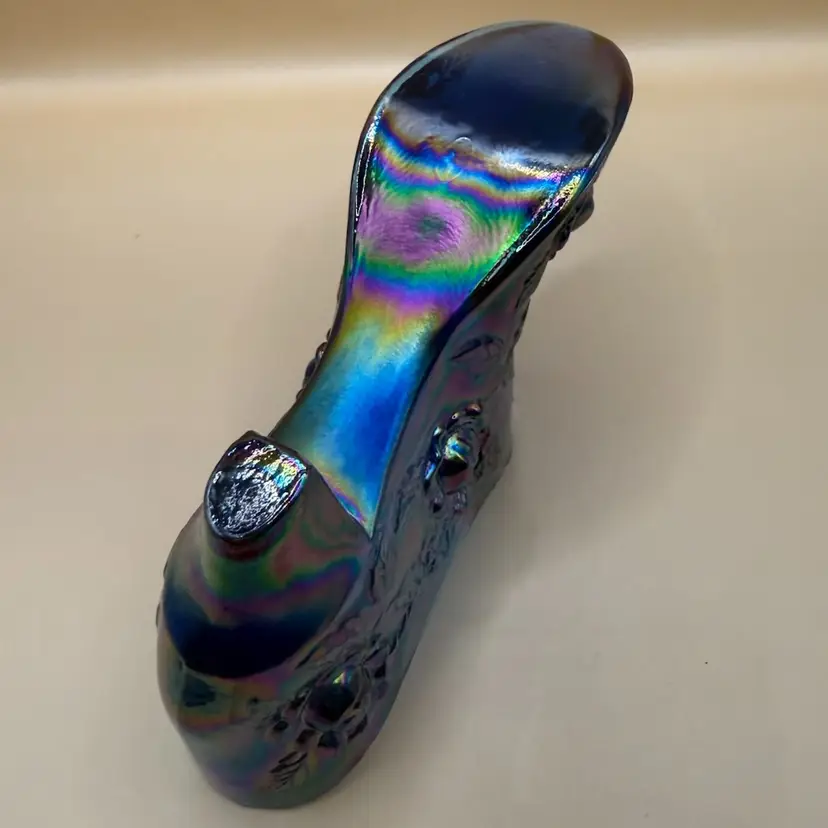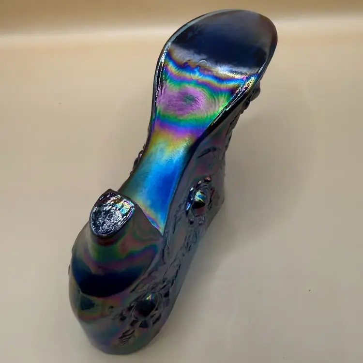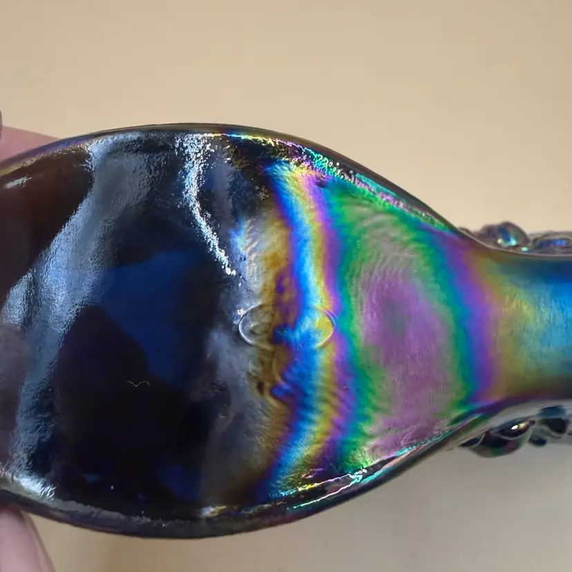 Excellent vintage condition. Gorgeous oil slick iridescence! Stamped Fenton on the bottom.