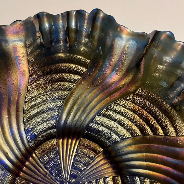 Produced in the first decades of the 20th century, this bowl likely hails from Fenton’s earliest mold runs. Authenticity evidenced by crisp mold detail, rich iridescence, and characteristic tool impressions, distinguishing it from modern reproductions.