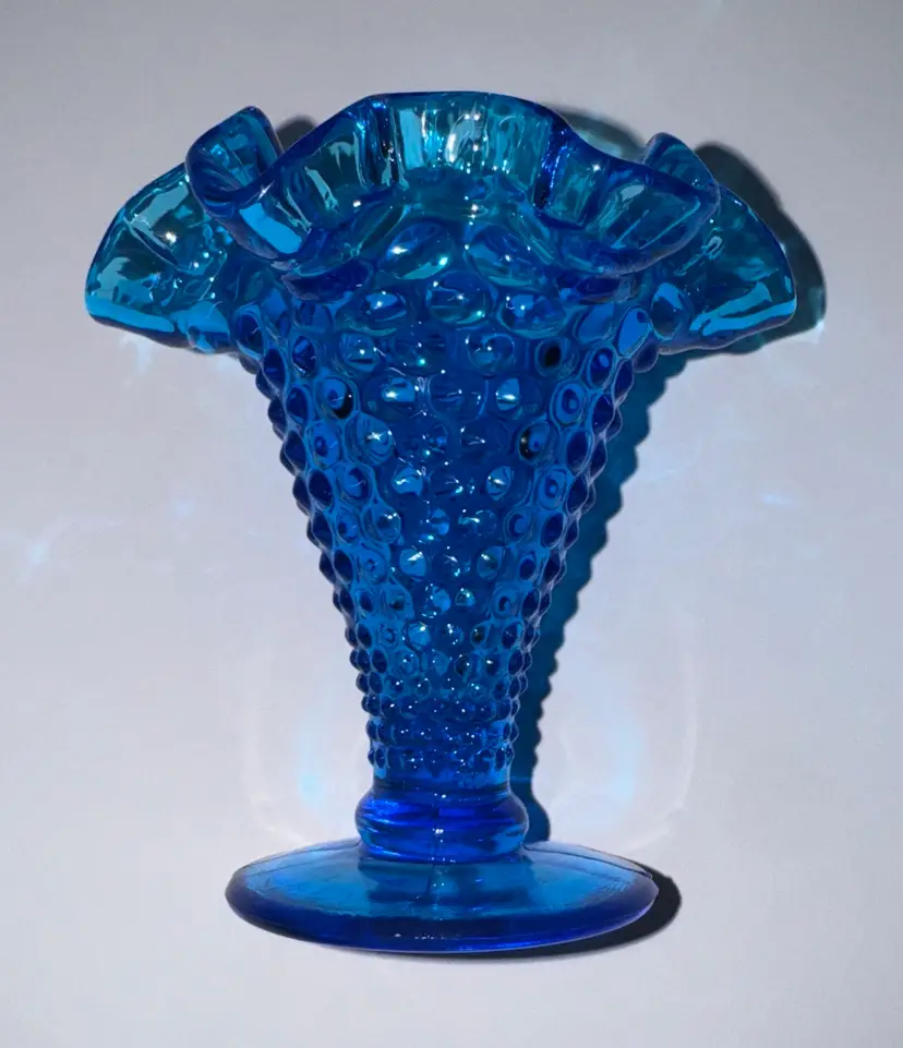 Fenton amber hobnail ruffled 4” trumpet vase 4” wide Really cute vibrant blue color perfect condition no breaks or chips (13621127255)