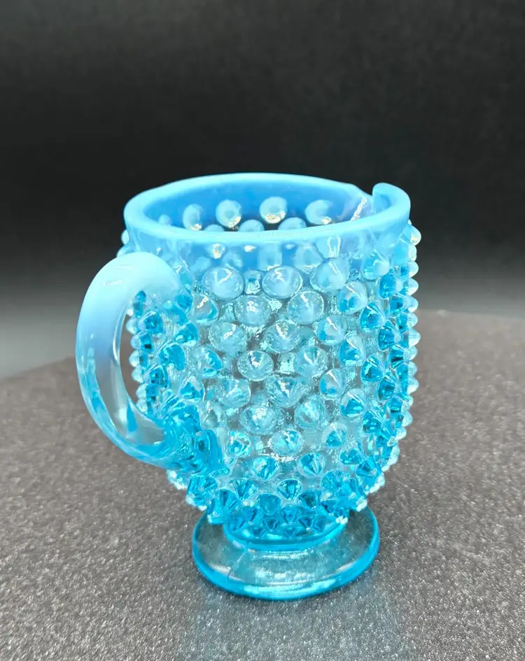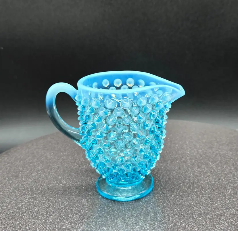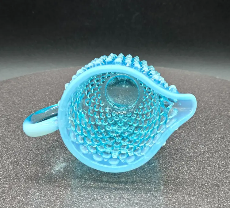 Fenton Blue Opalescent Cream Pitcher 3.5" X 4.5". Excellent Vintage Condition. Please see photos as they are part of the description. Item will be well wrapped before shipping.