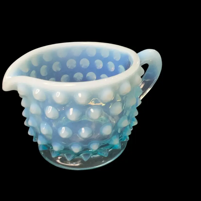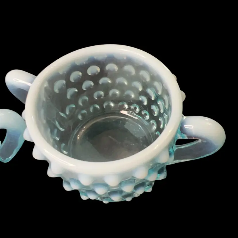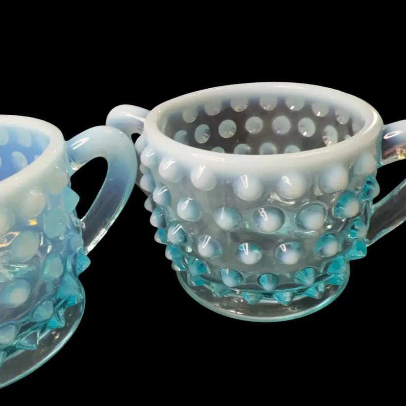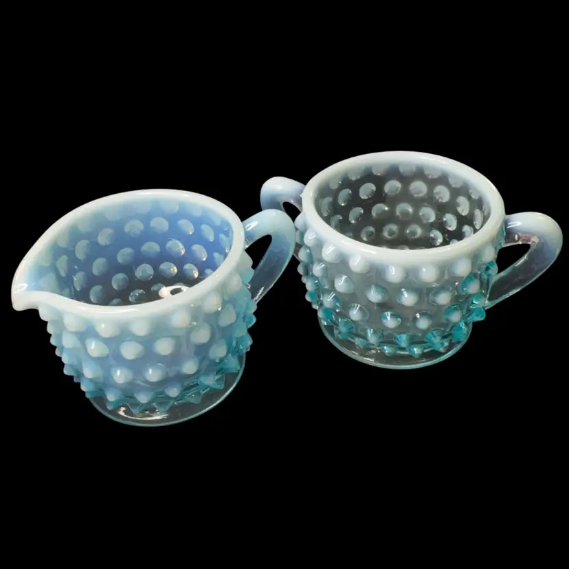 Fenton Blue Opaline Hobnail Mini Open Cream And Sugar Set 1950-1960