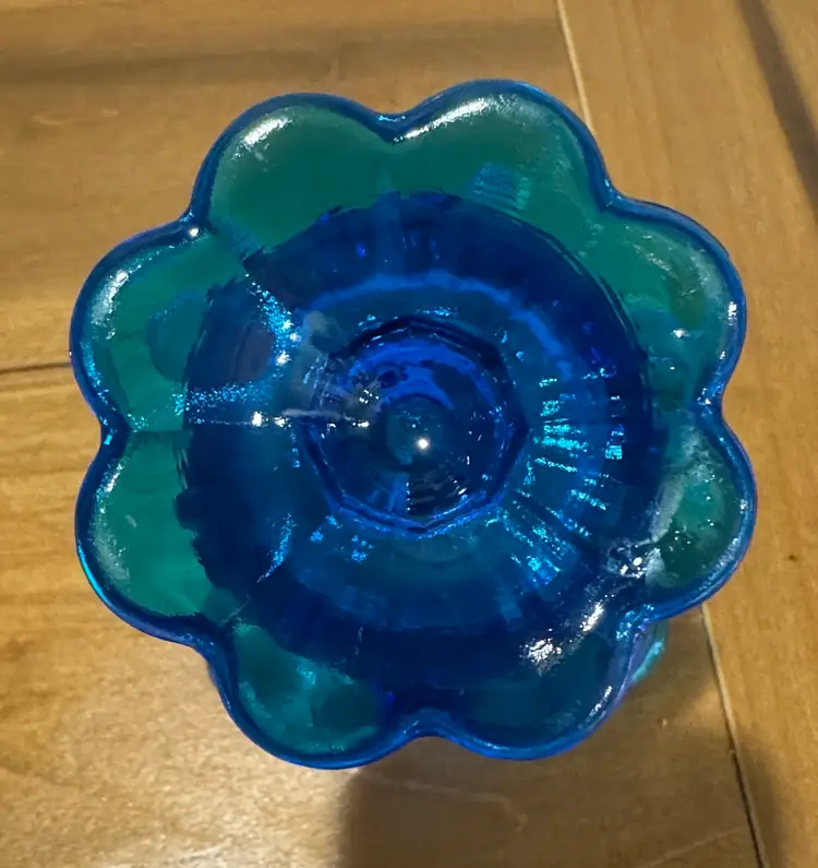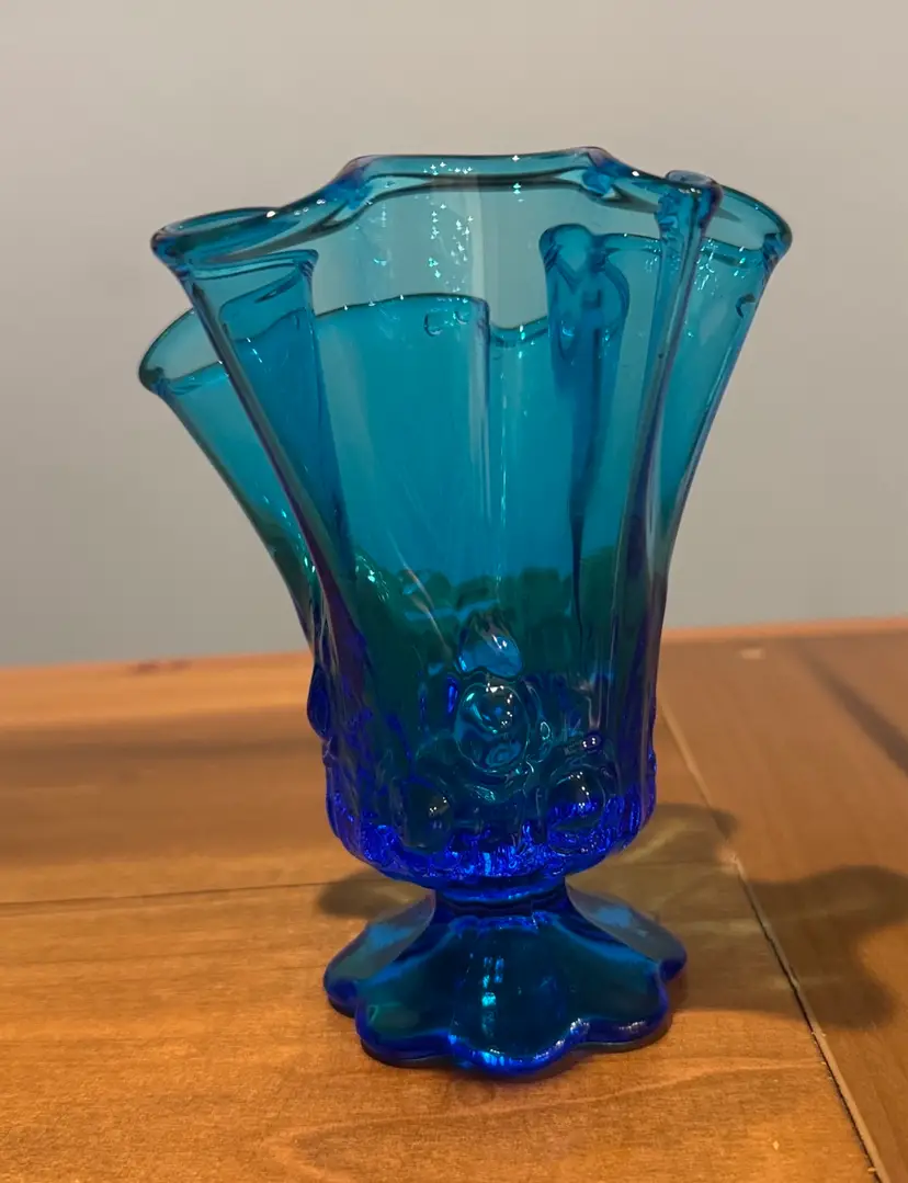 Vintage Fenton Blue Handkerchief Vase Petal Footed Embossed Flowers Cabbage rose 5.5” tall Excellent condition with no breaks or chips (3116269)