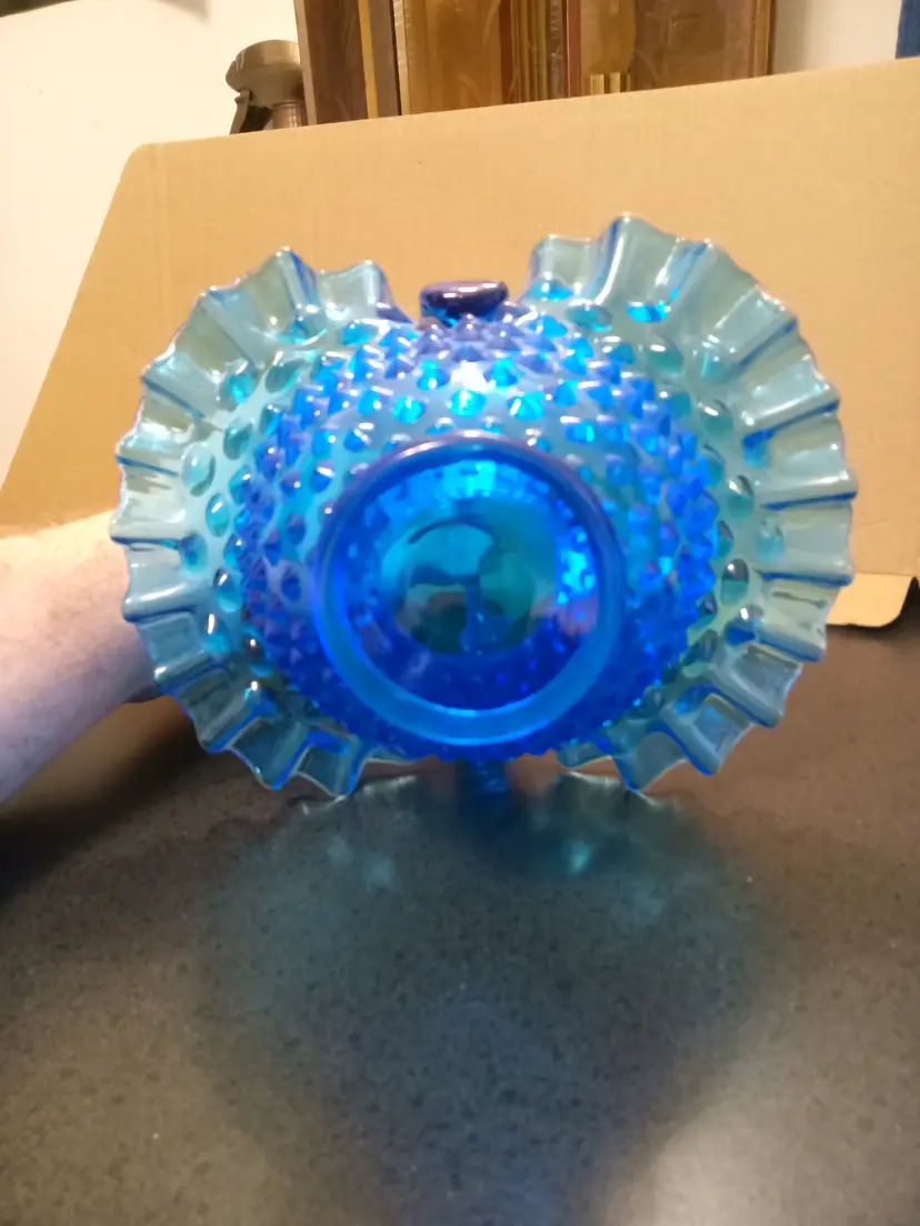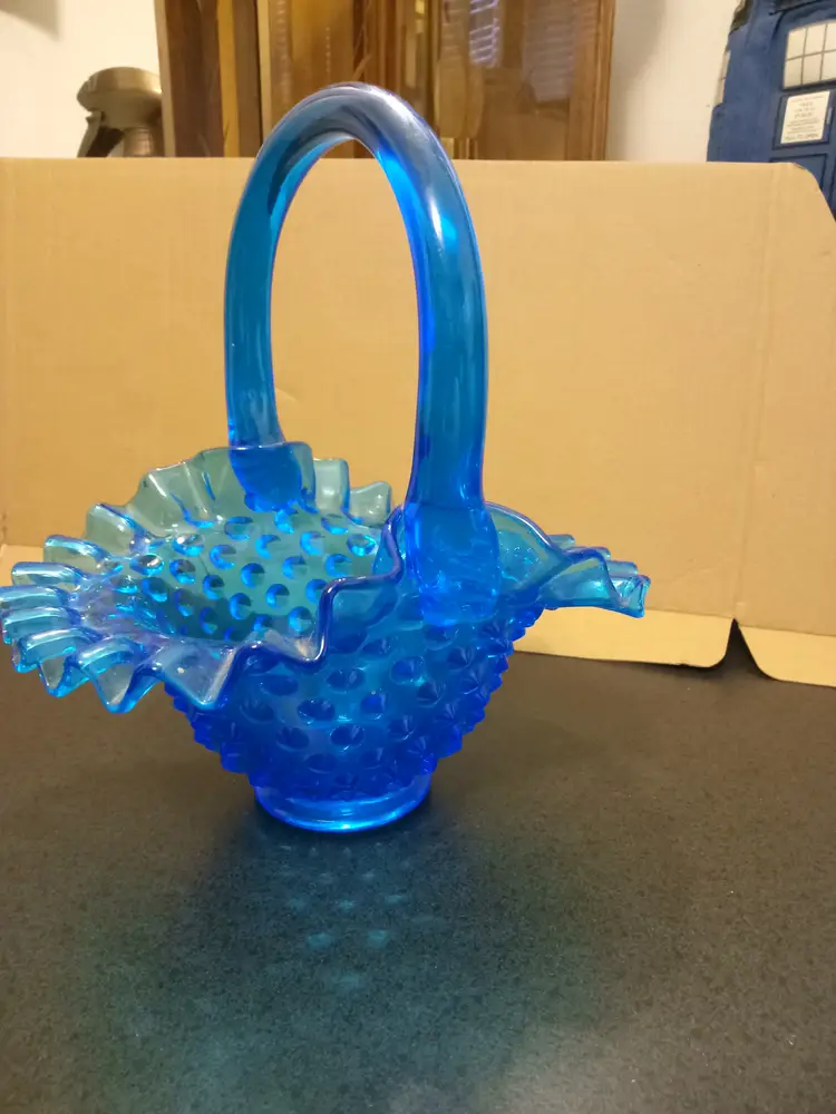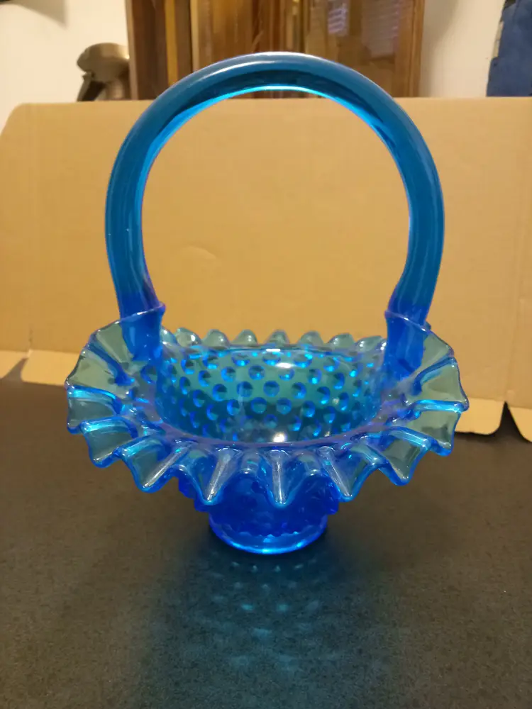 Fenton Colonial Blue Hobnail Art Glass Basket form 1970's