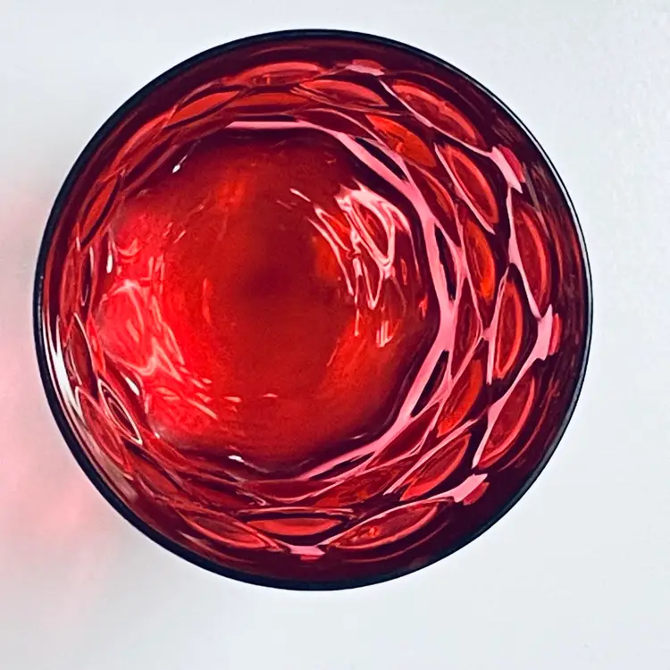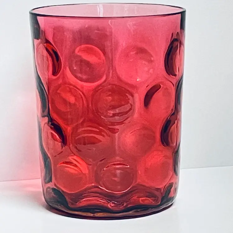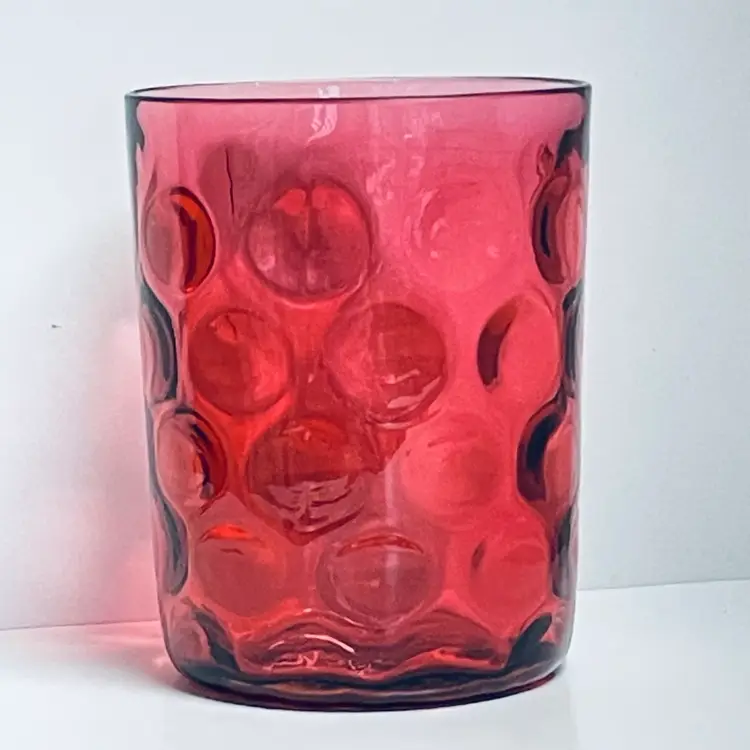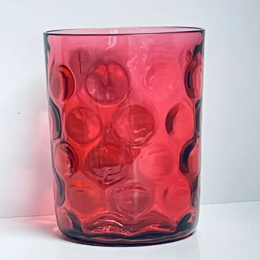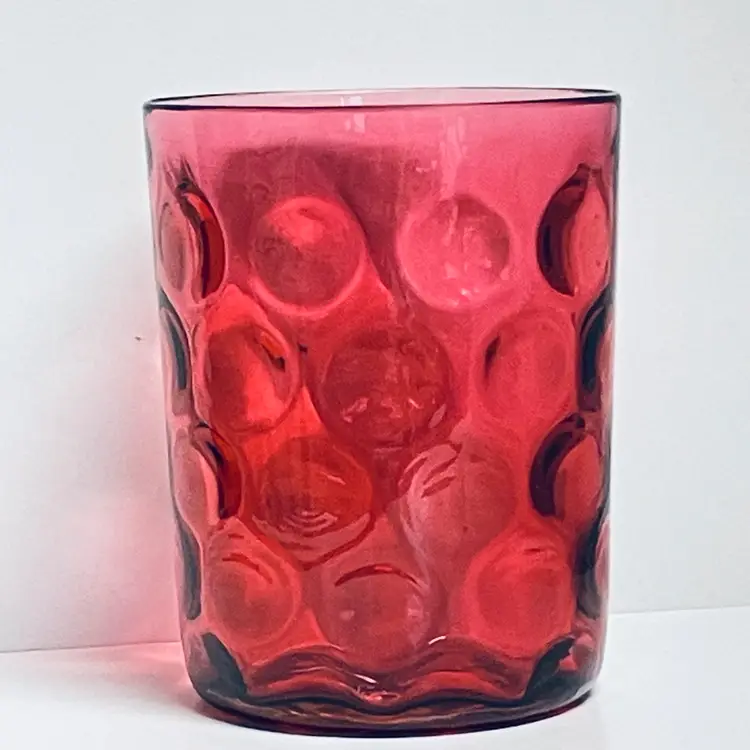 This is a Fenton Cranberry Hand Blown Coin Dot Thumbprint Lowball Tumbler Water Glass #2