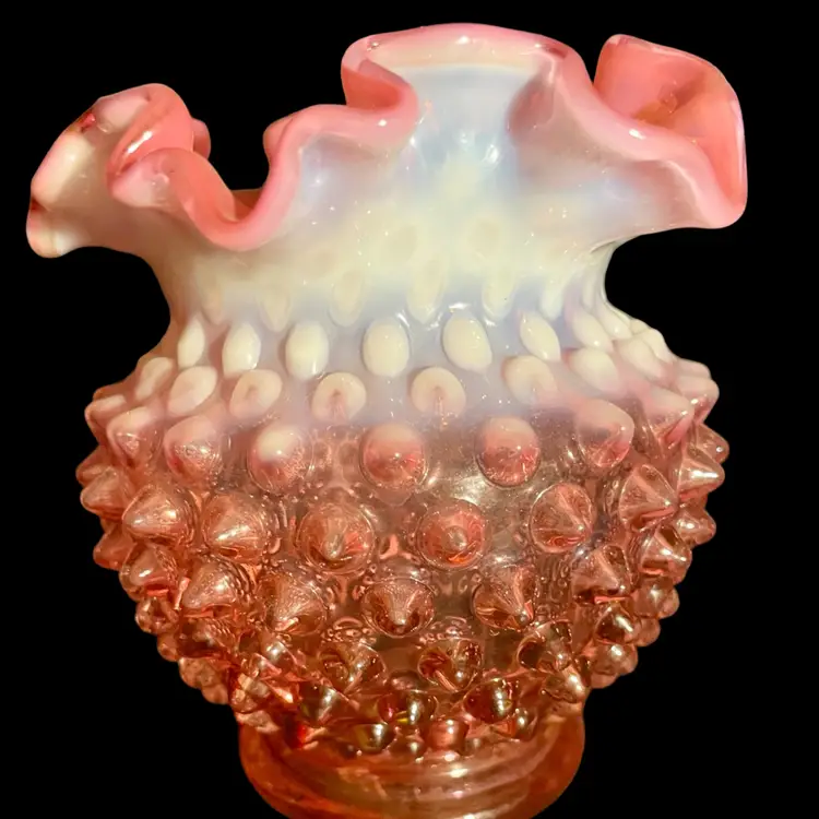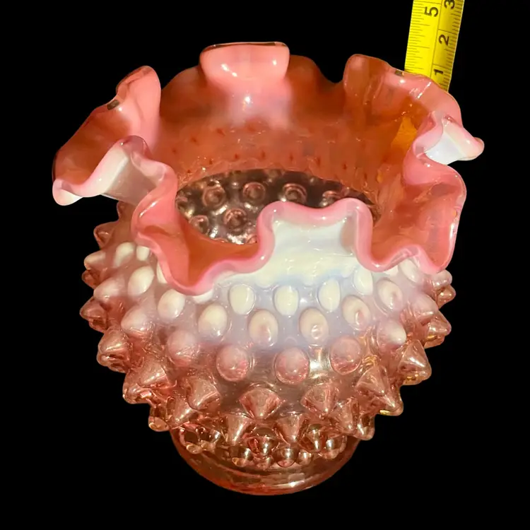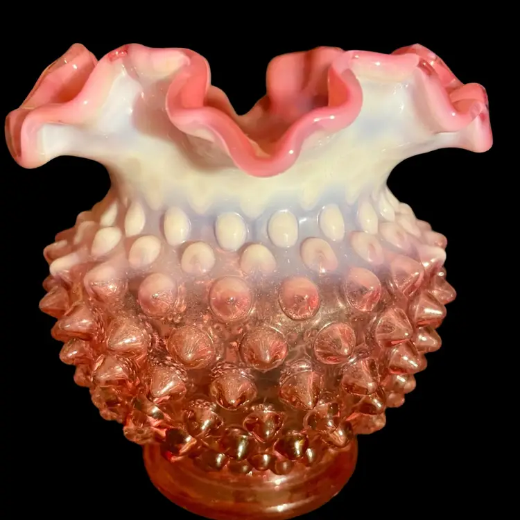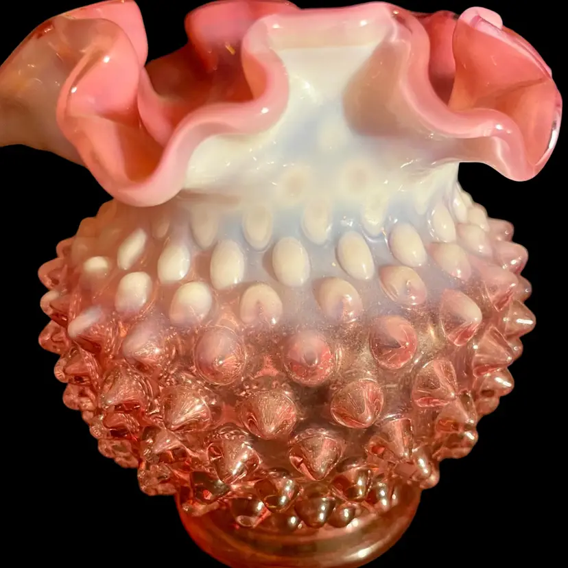 Fenton Cranberry Pink Pastel Opalescent Hobnail Rose Bowl Vase. 4.5 in x 4 in. Condition Is Used. Shipped With USPS Mail