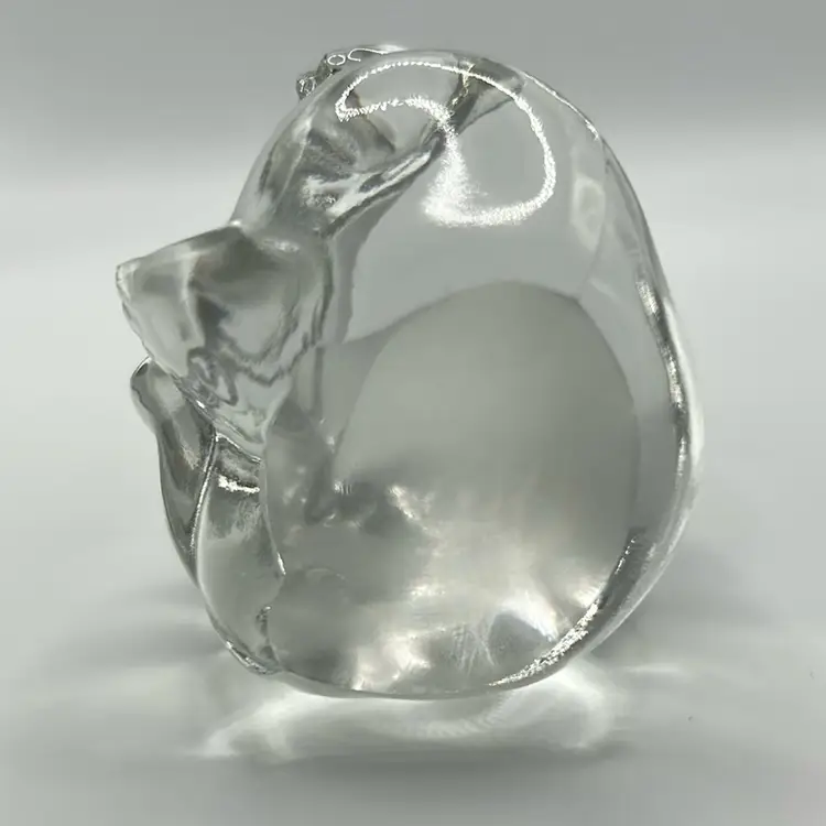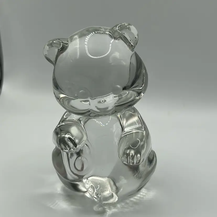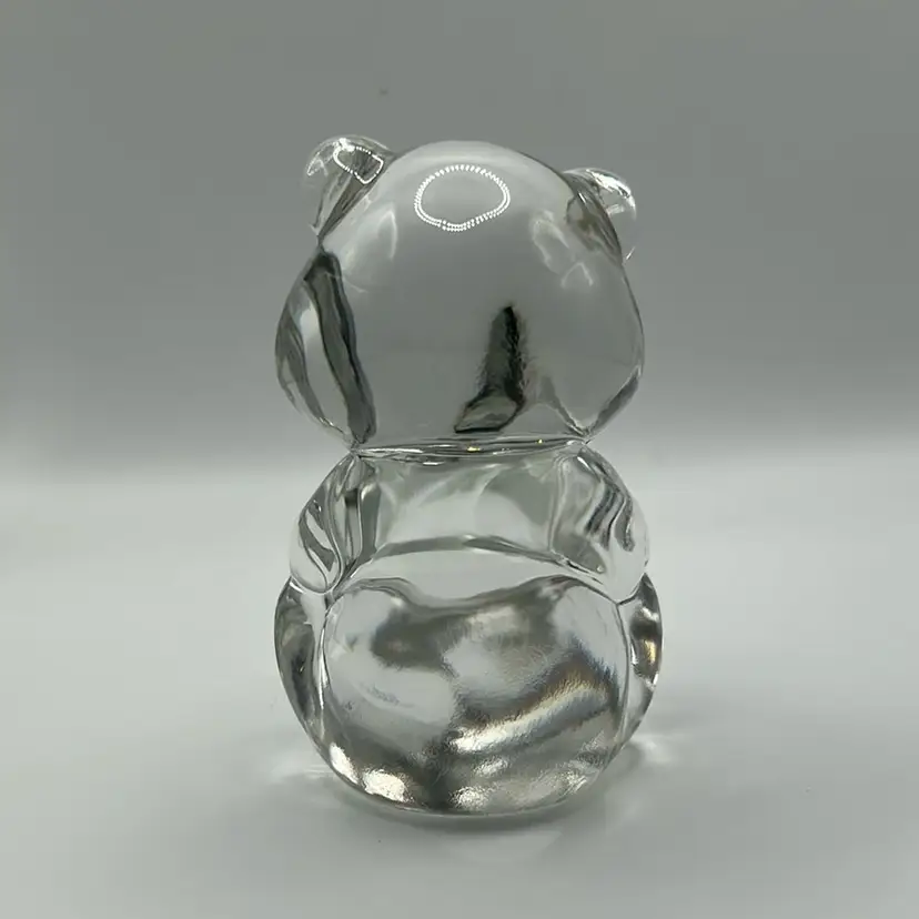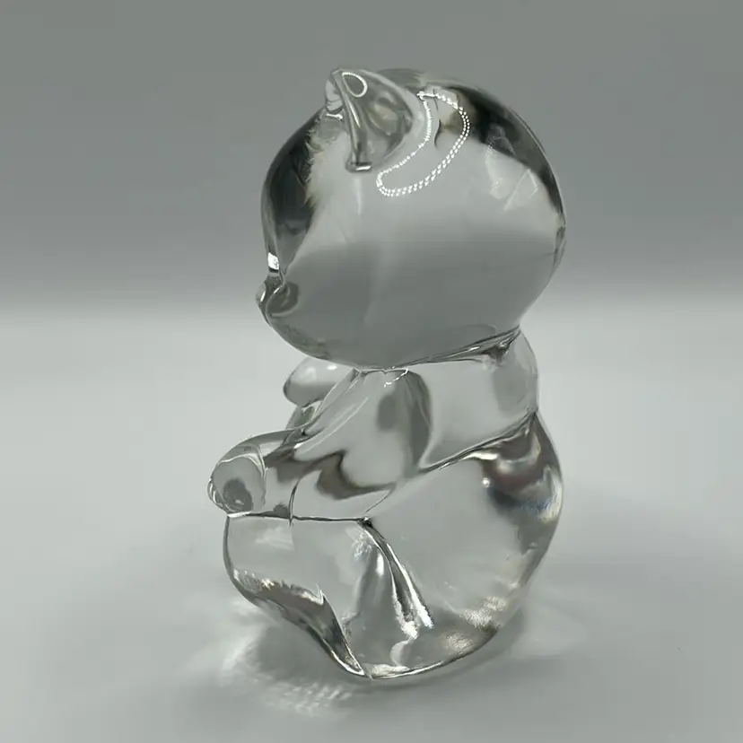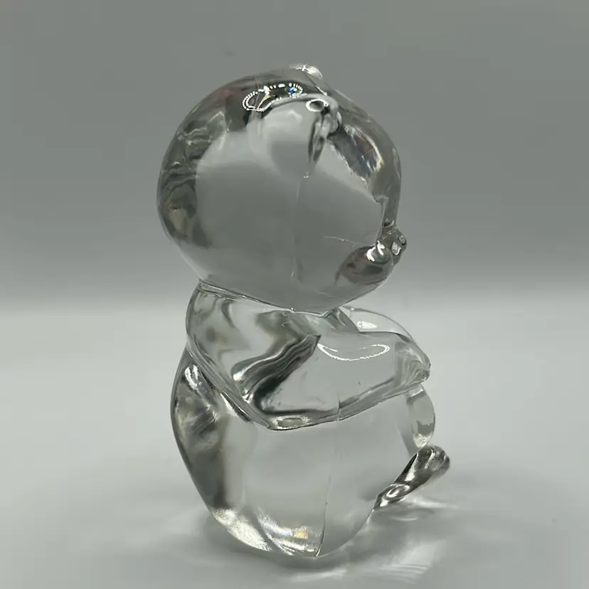 This piece is a Fenton art glass teddy bear made from clear glass. It stands 3 inches tall and two. And a half inches wide there are no condition issues.