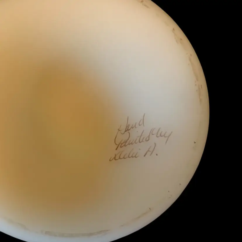 No chips cracks. Hand painted Fenton signed ?. 8 x 6 inches.
