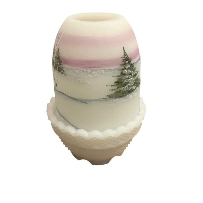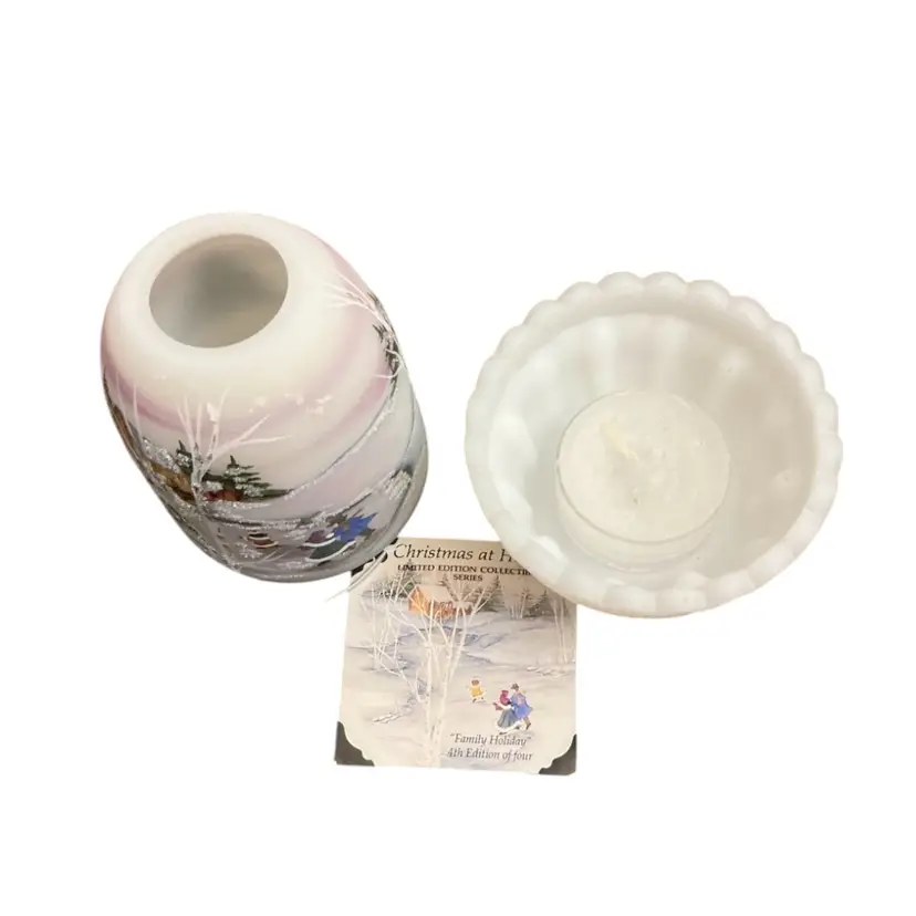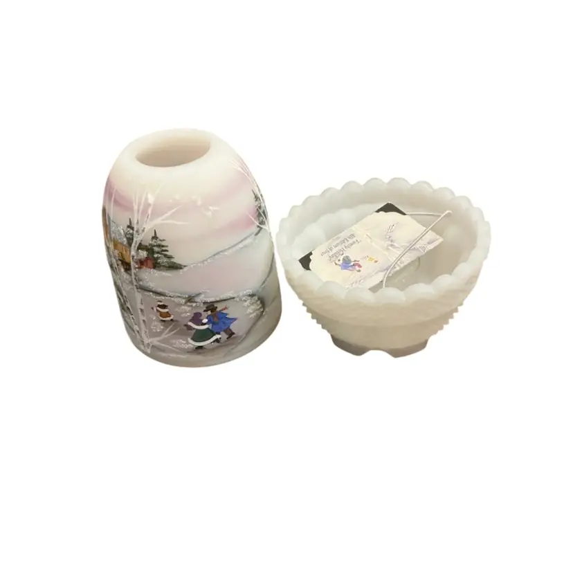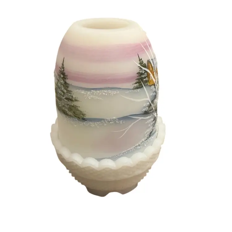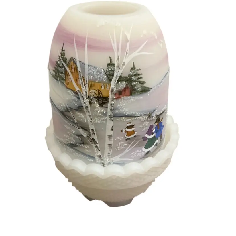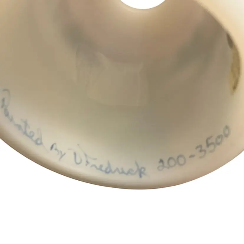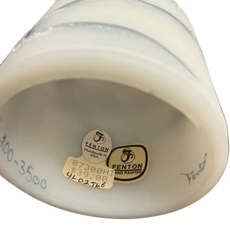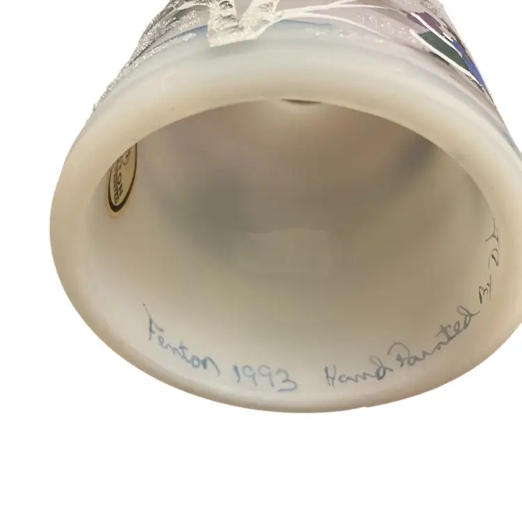 Gorgeous white opal with applied frit fairy light hand painted by D. Fredrick in 1993. This collector’s piece is #200/3500. Original tag $ sticker are in tact. No glow. 4 1/2” x 3.”