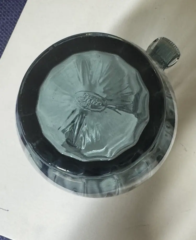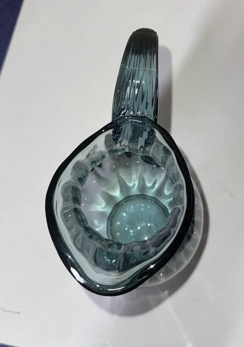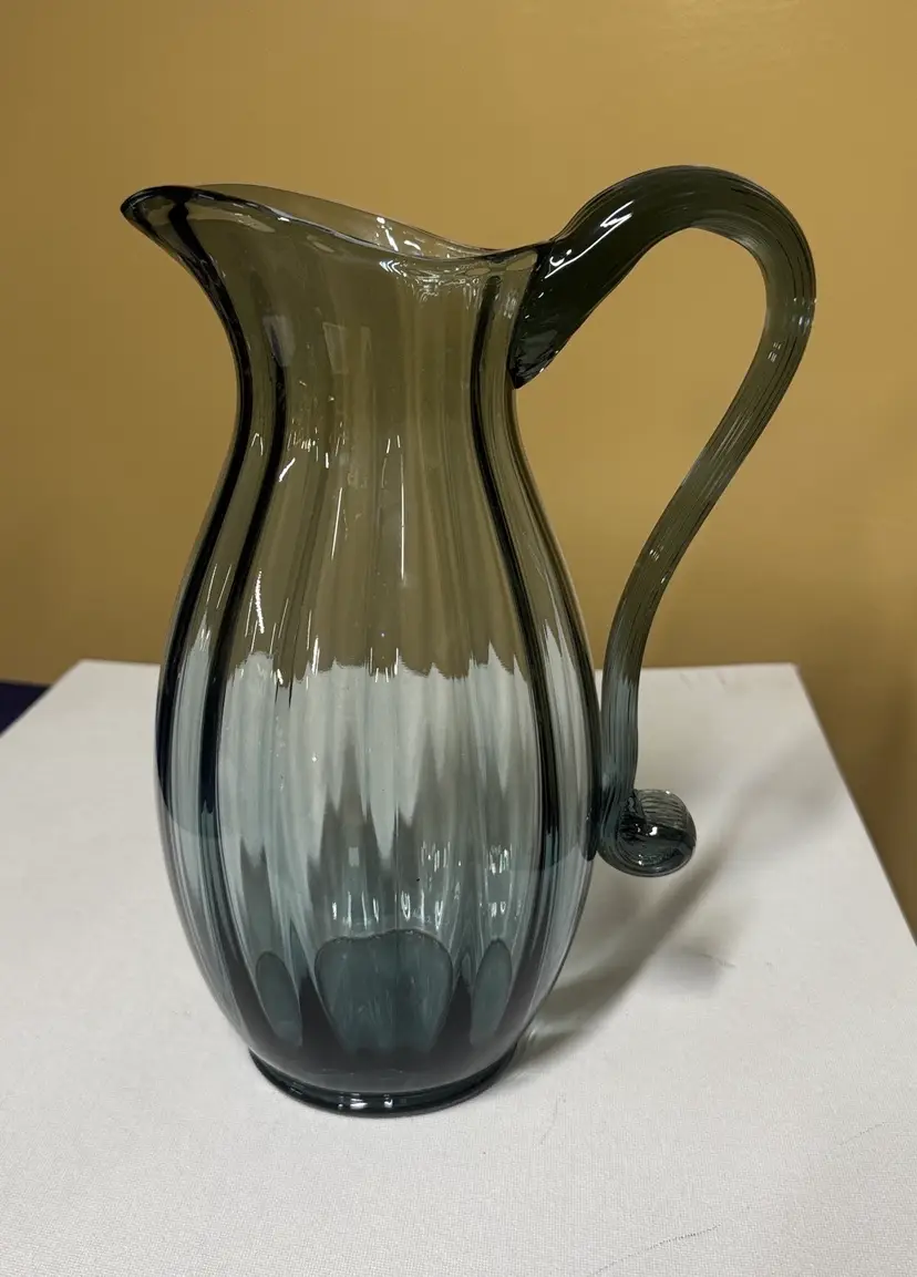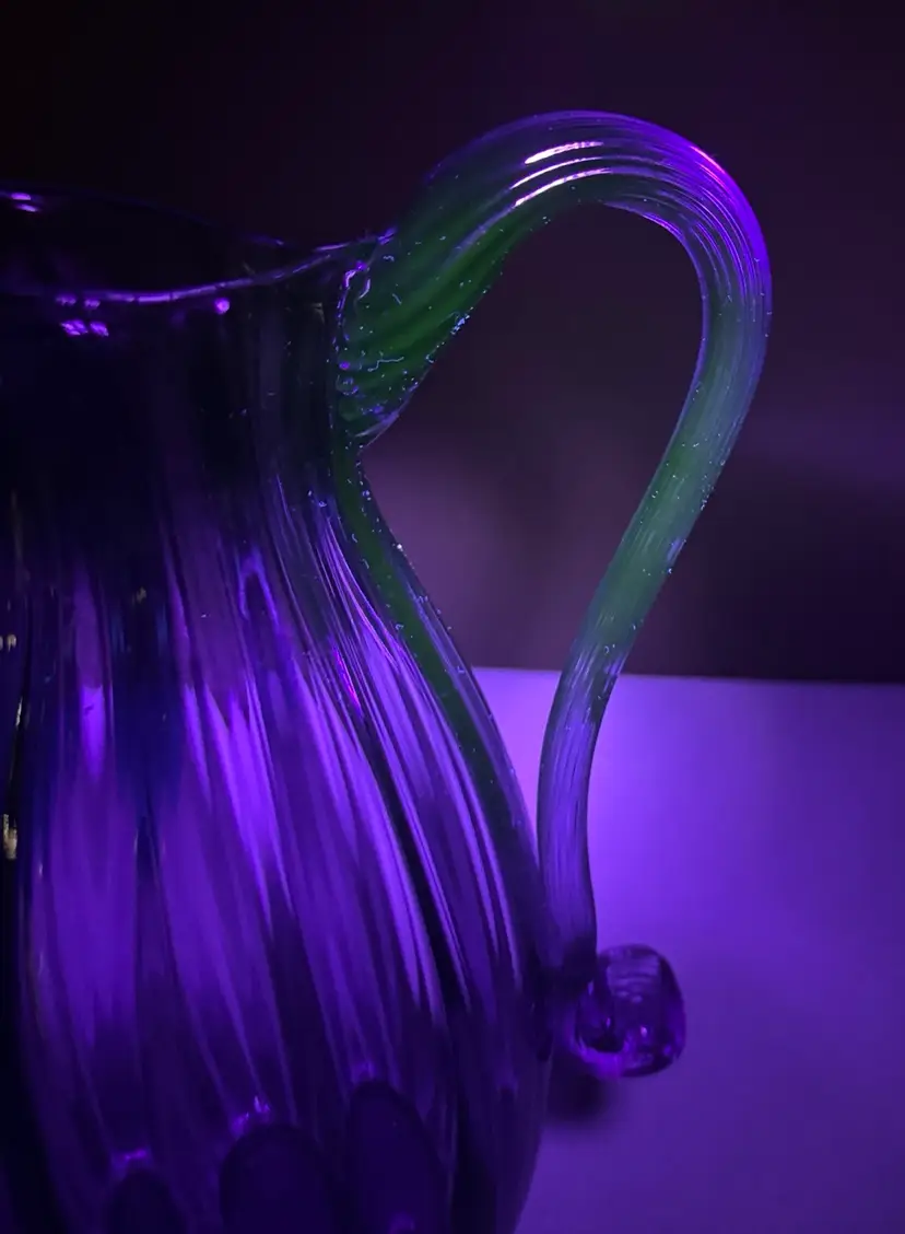 Fenton Federal Blue "American Legacy Collection" Ribbed Pitcher U.V. Reactive, glows green under black light, Unique Color Marked "Fenton" No chips, cracks Approx. 10.5” tall I also have a bowl from this same collection in the same color listed. Beautiful blue glass pitcher with a ribbed design. Perfect for serving or decoration. (12351182510)
