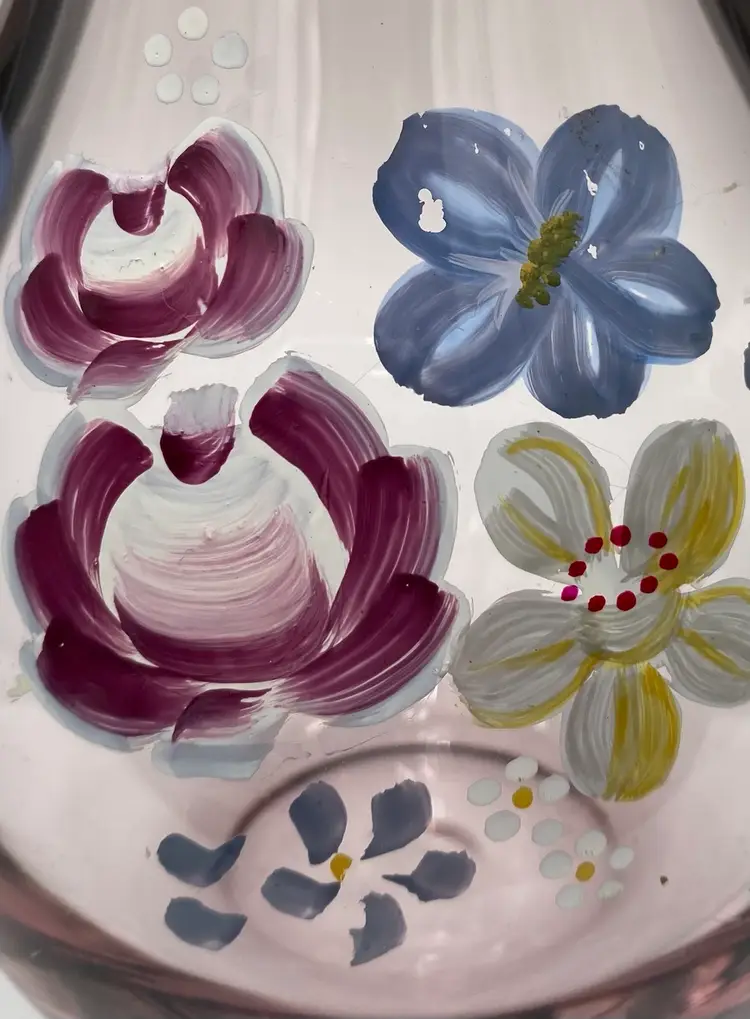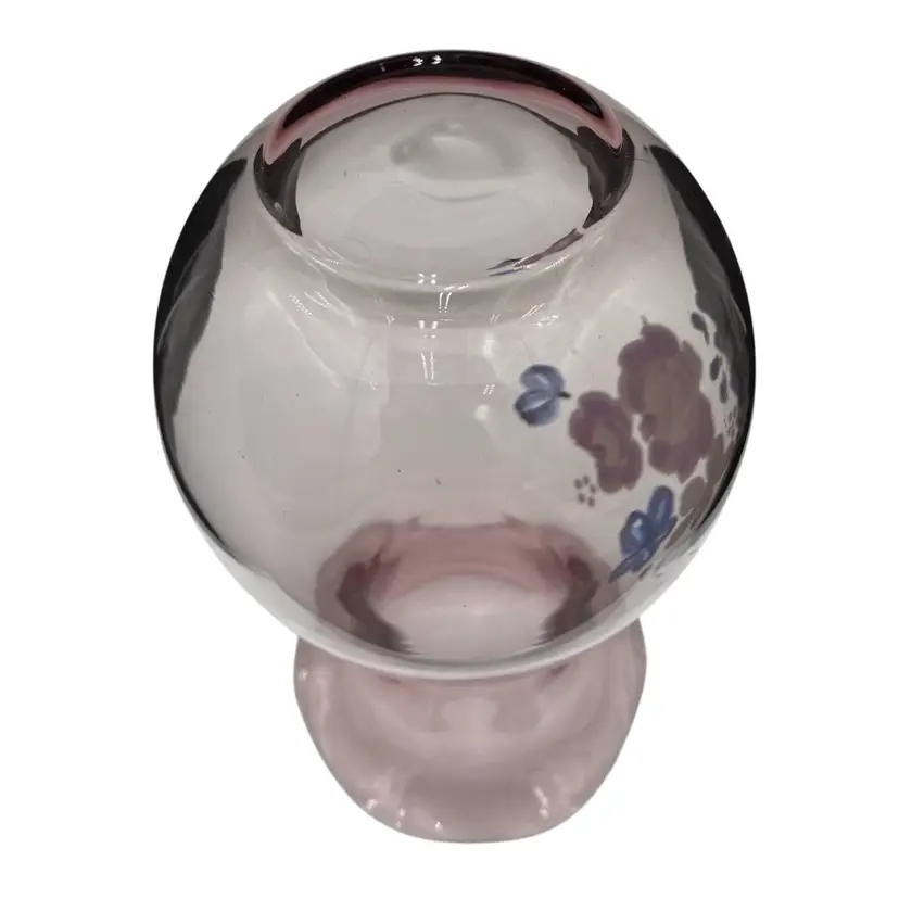 The vase is in excellent used condition. There are no chips or cracks. There is slight wear on the hand-painted flowers.