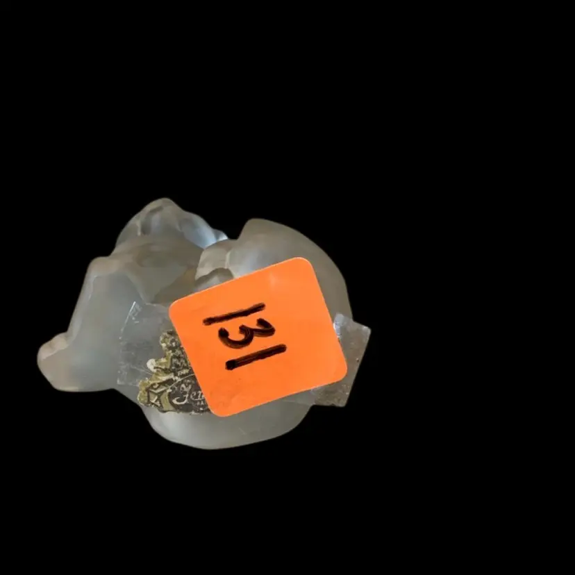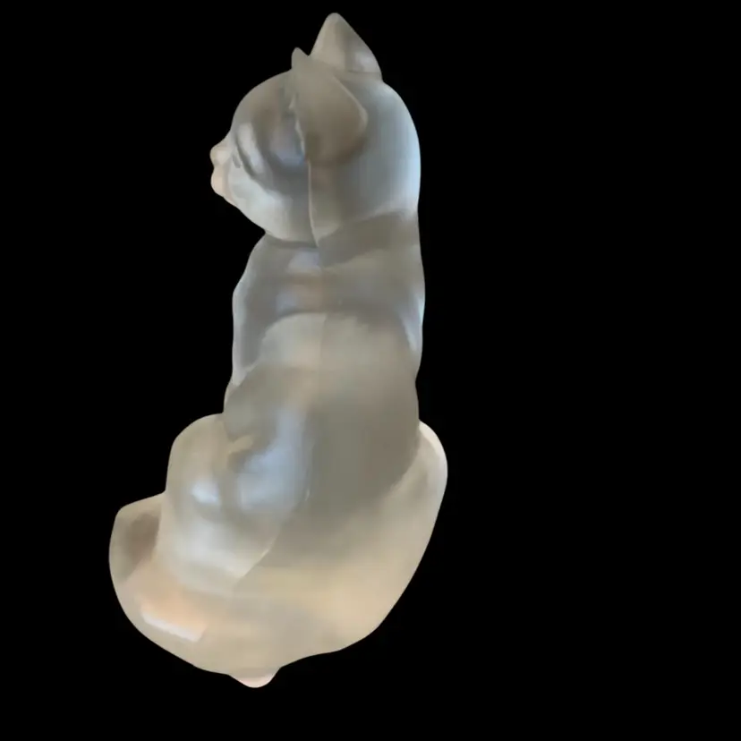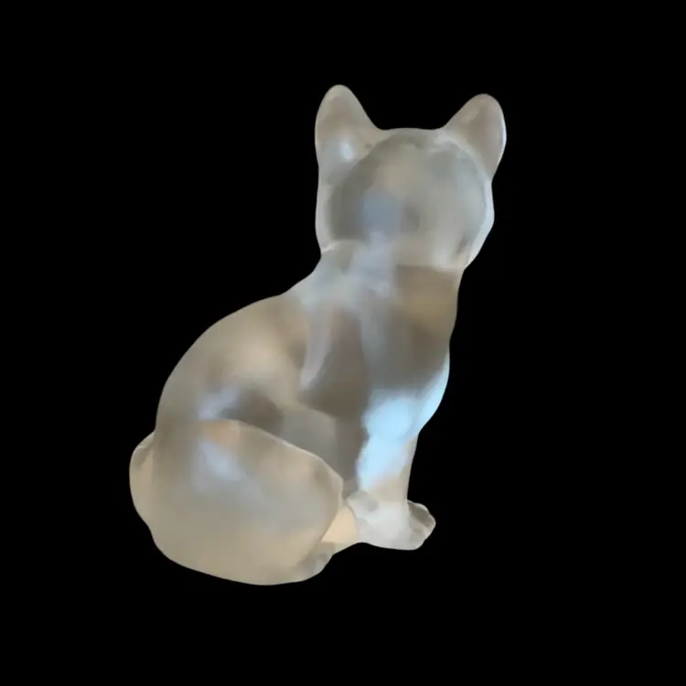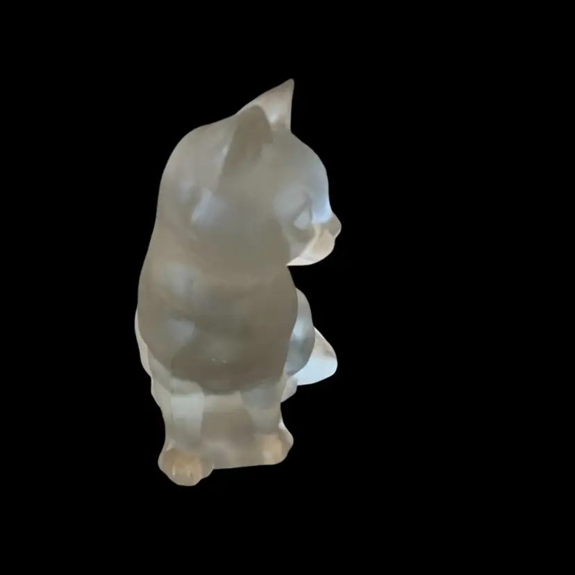 Fenton label on bottom with tape and auction tag. Fenton on front of cat.