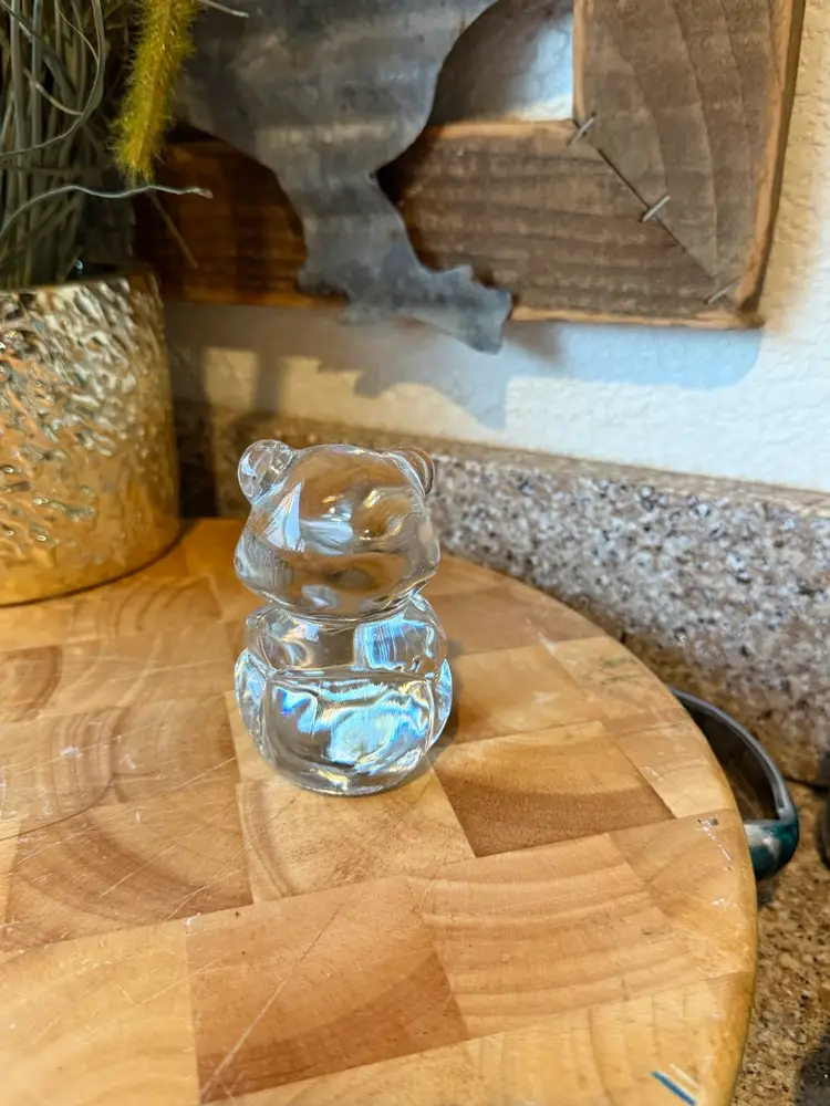 ⸻ • Maker: Fenton • Material: Clear glass • Type: Bear figurine / paperweight • Condition: • Very good vintage condition • Light wear to base with sticker residue from original Fenton label