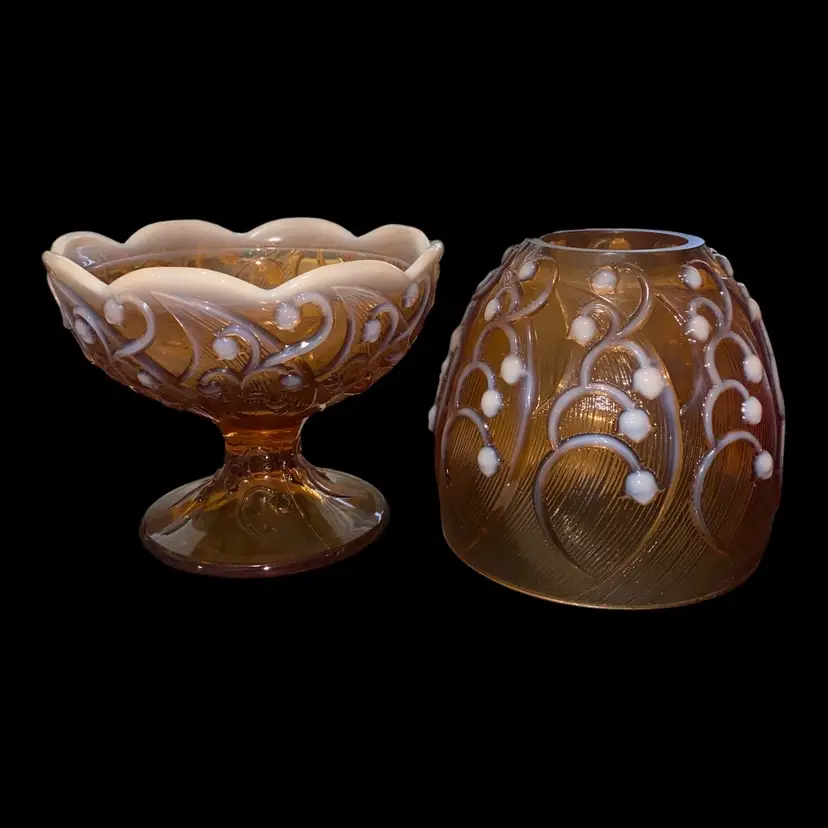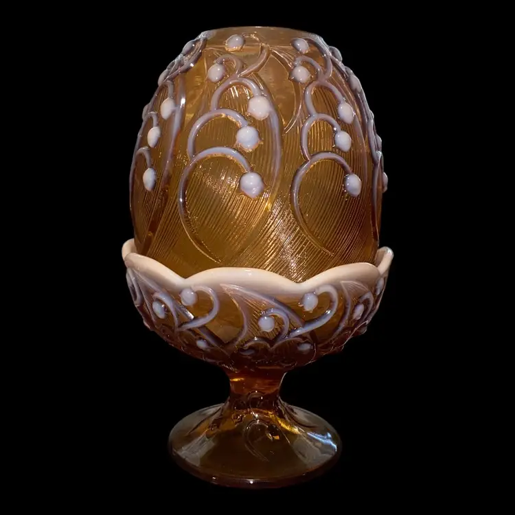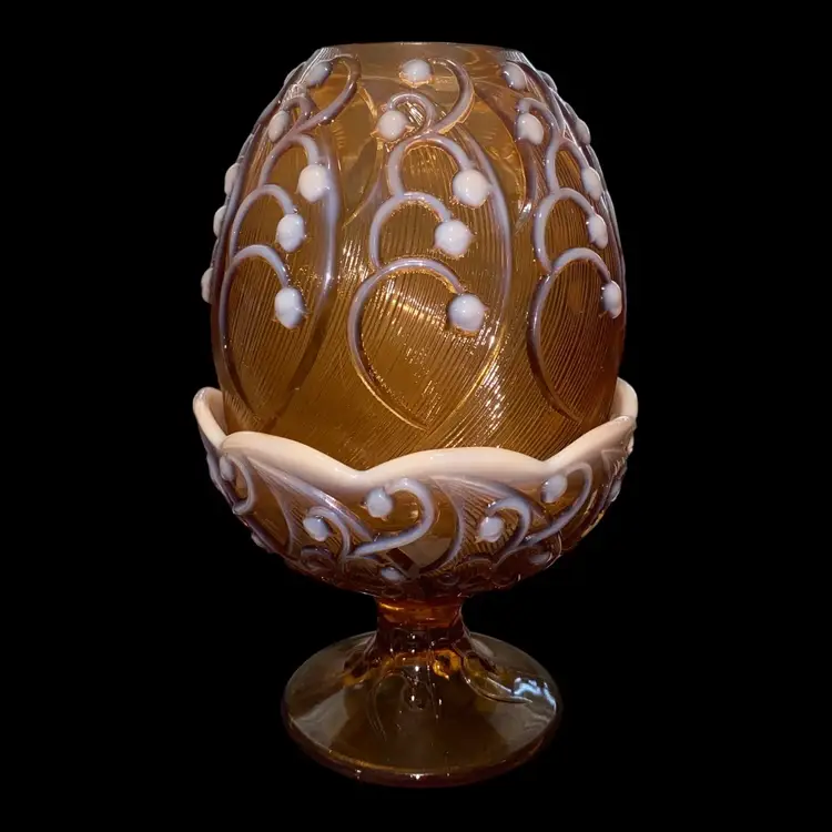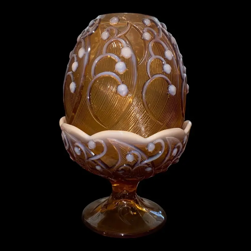 •late 60s-early 70s Fenton glass cameo opalescent fairy lamp in a stunning Lily-of-the-Valley pattern •excellent condition with no chips, cracks, etc!