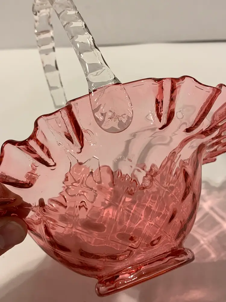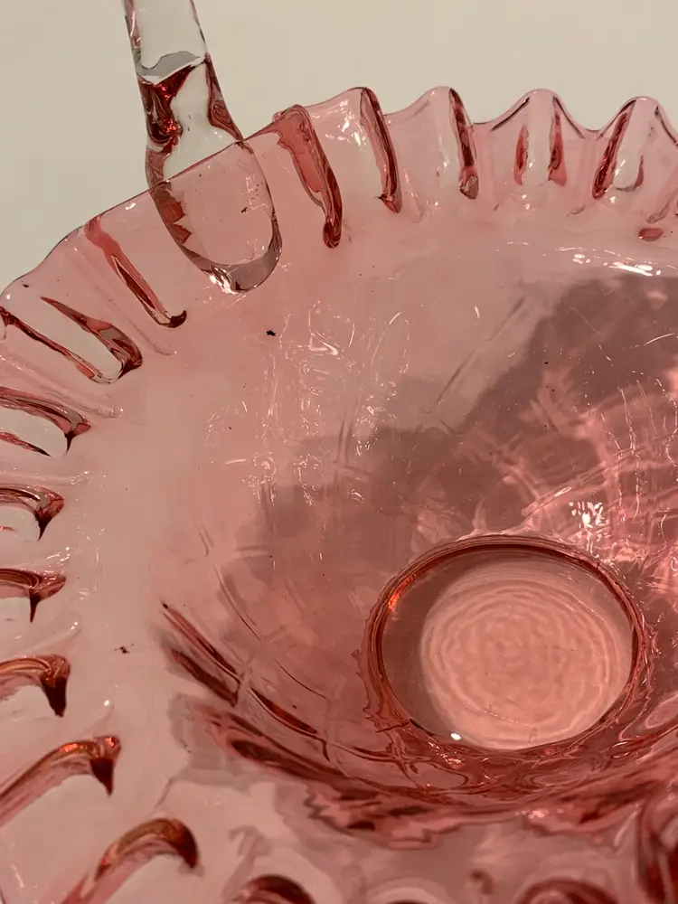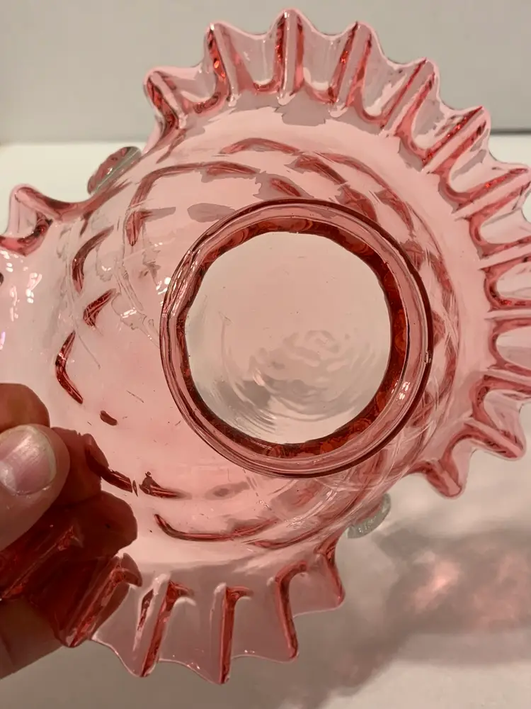 Lovely piece in great condition. It is 7” tall and 7” wide. There are no chips, cracks, or breaks. There are a few small specks of black ash in the glass. Sold as is