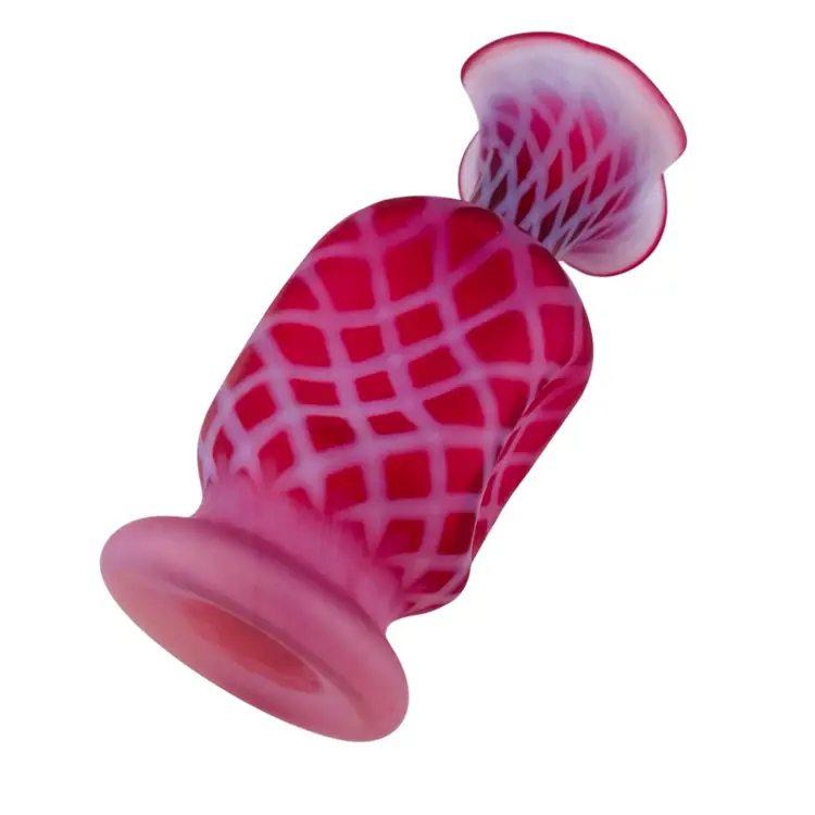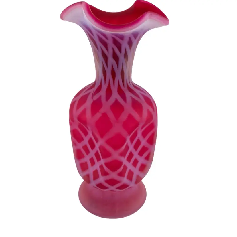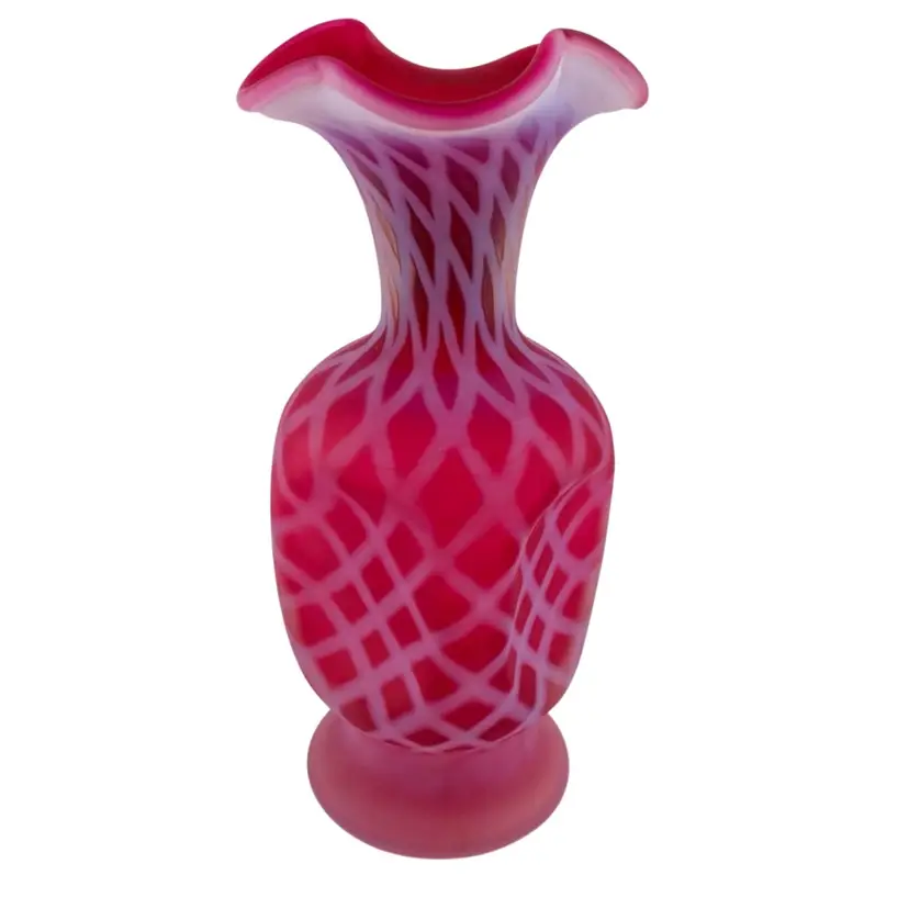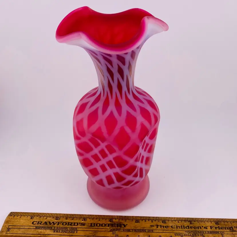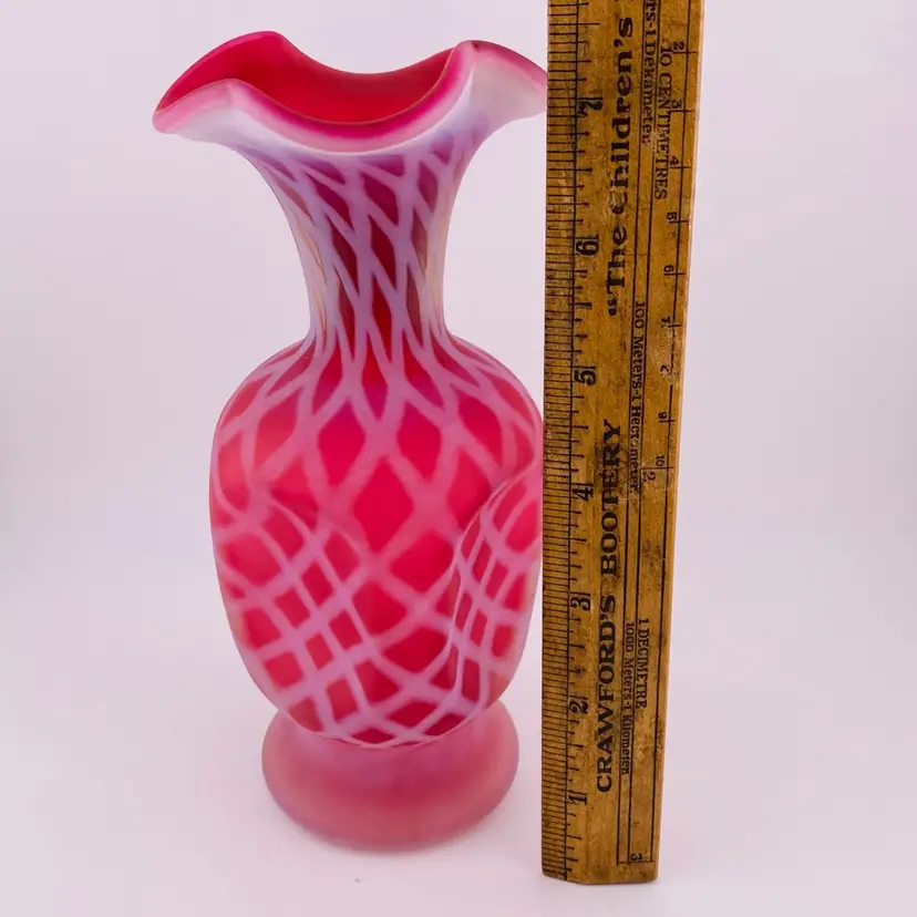 Fenton Glass Cranberry Pinched Optic Vase 7.5” Cottagecore
