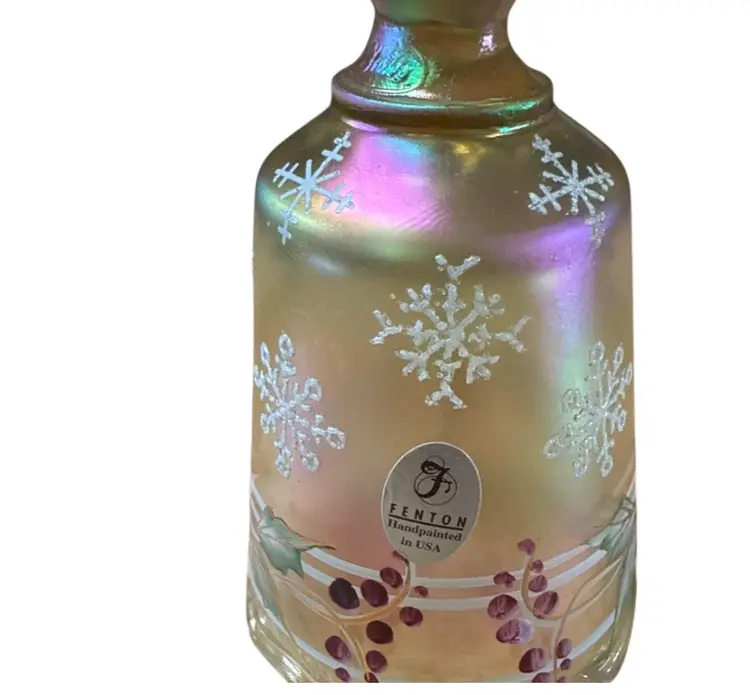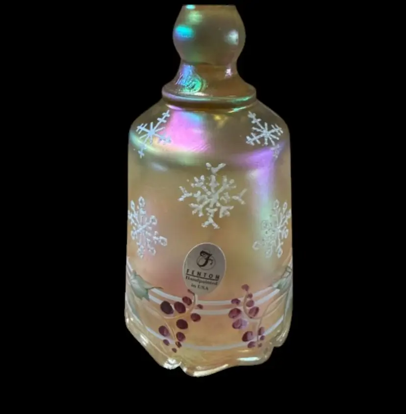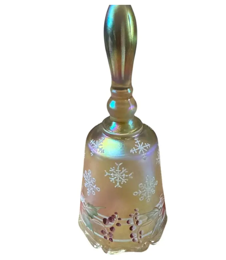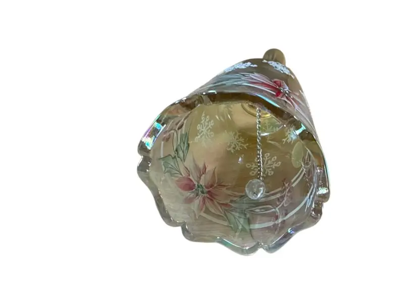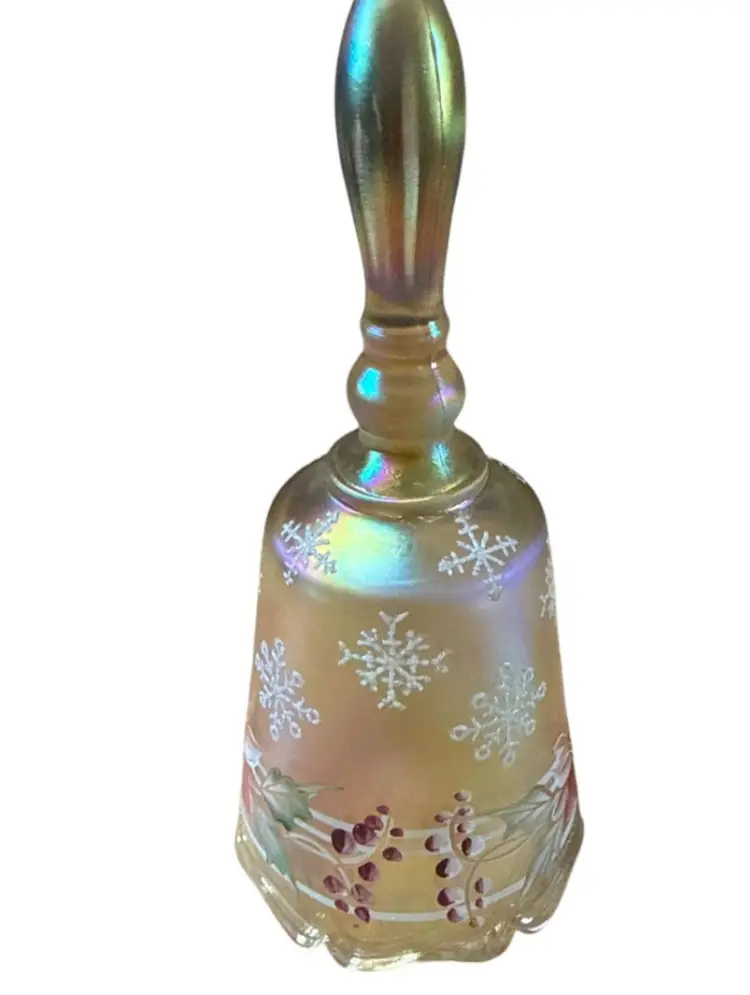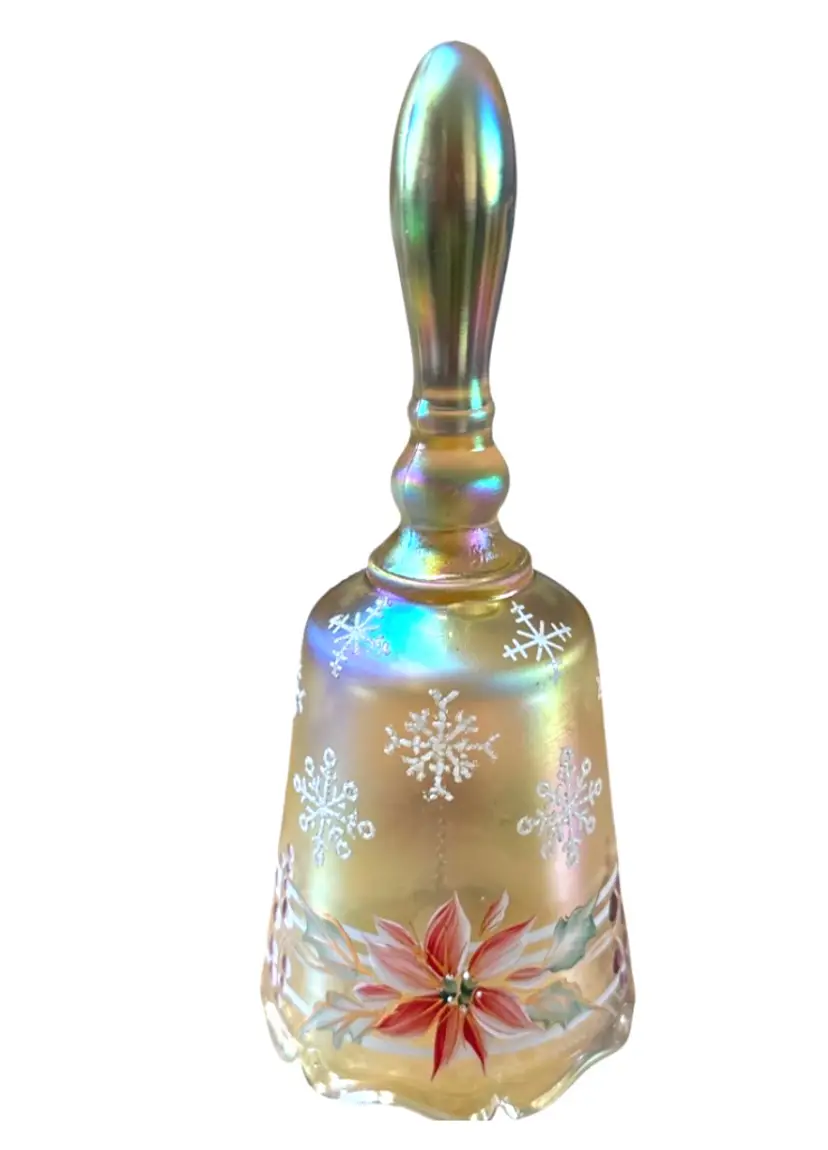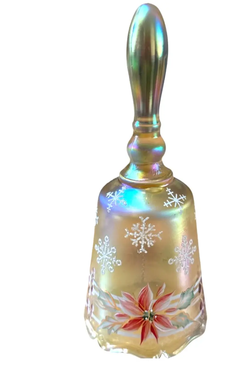Fenton Glass Iridescent Bell Holiday Snowflake Hand Painted Poinsettia Winter No cracks or chips, beautiful Piece