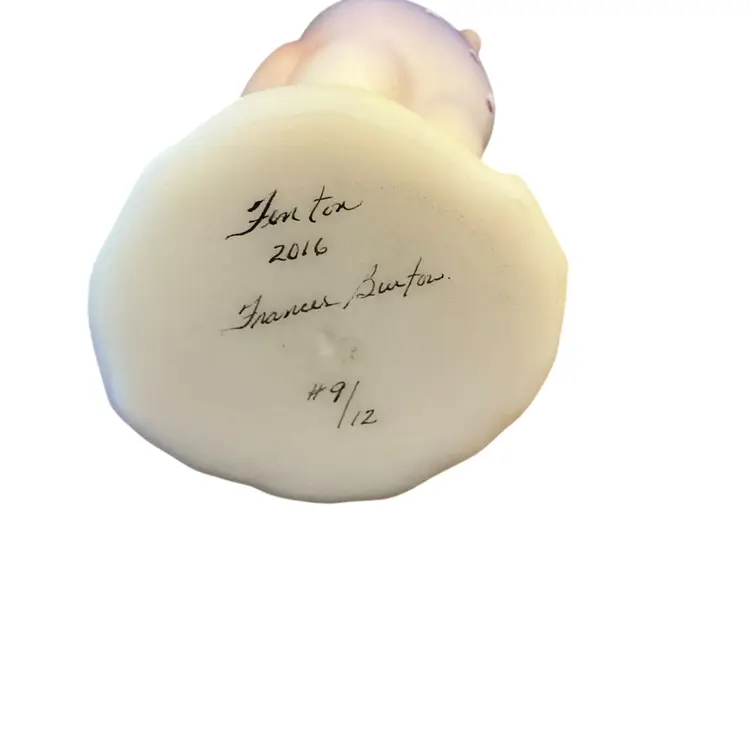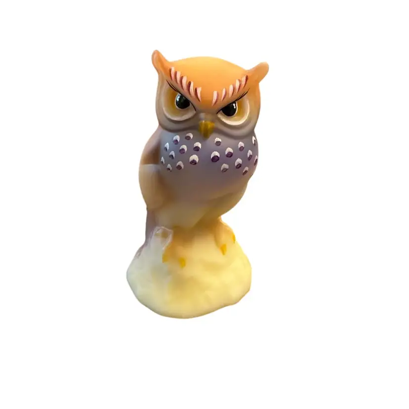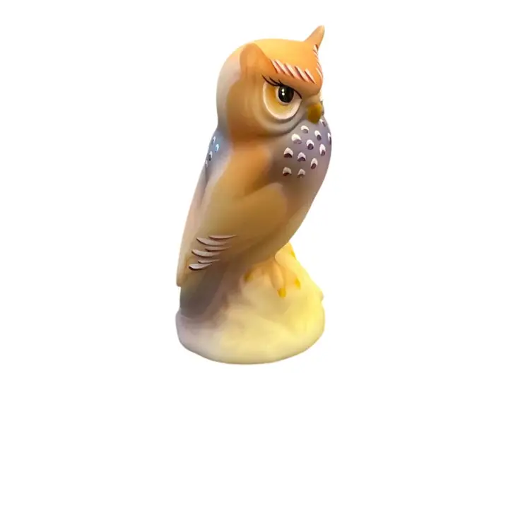 This handsome delicately detailed owl was hand painted in 2016 by F Burton. This is number 9/12 in the collection by this artist. The owl stands at 5 1/2” tall and 3” across at the widest point.