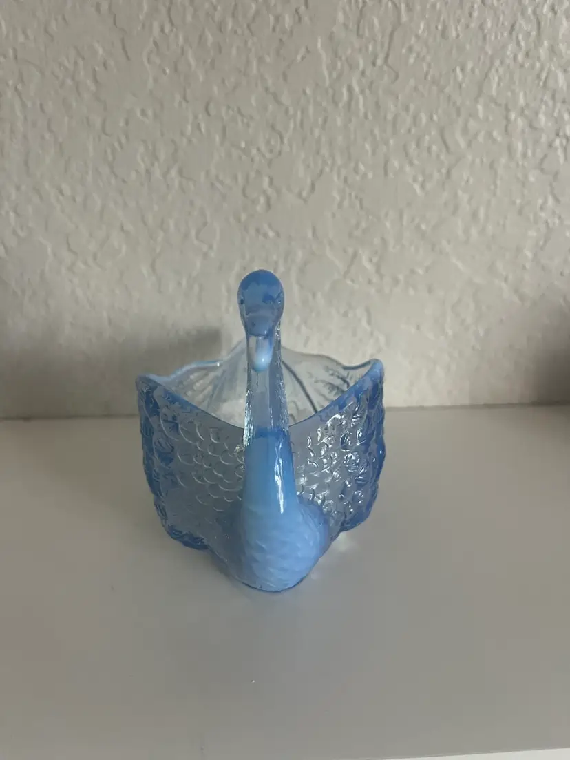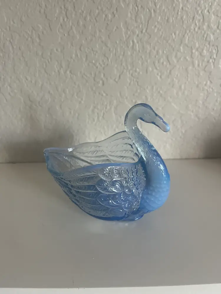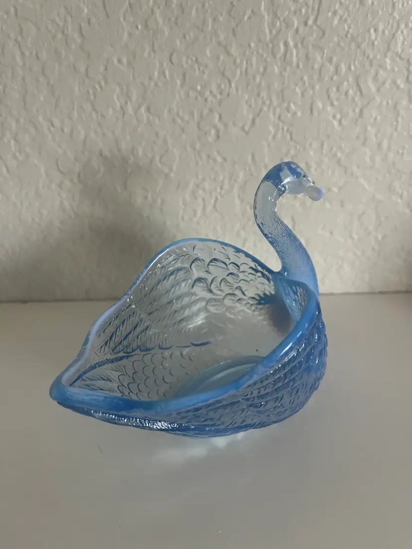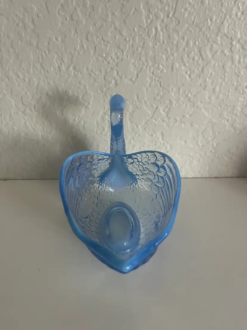 This Fenton Colonial Blue Opalescent Glass Swan can be used as a trinket or candy dish. Excellent condition with no chips or cracks. Measures approximately 4”x5”