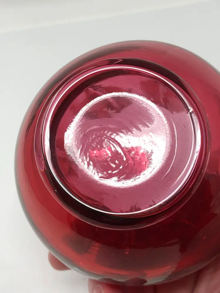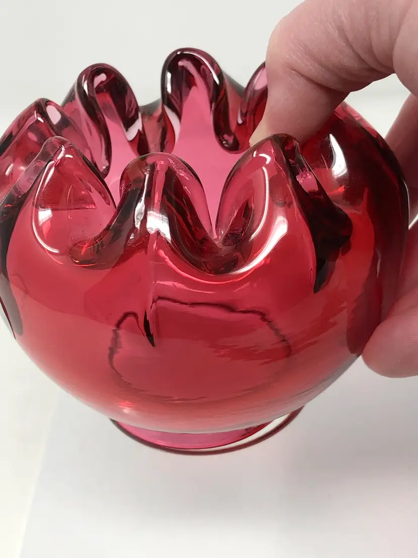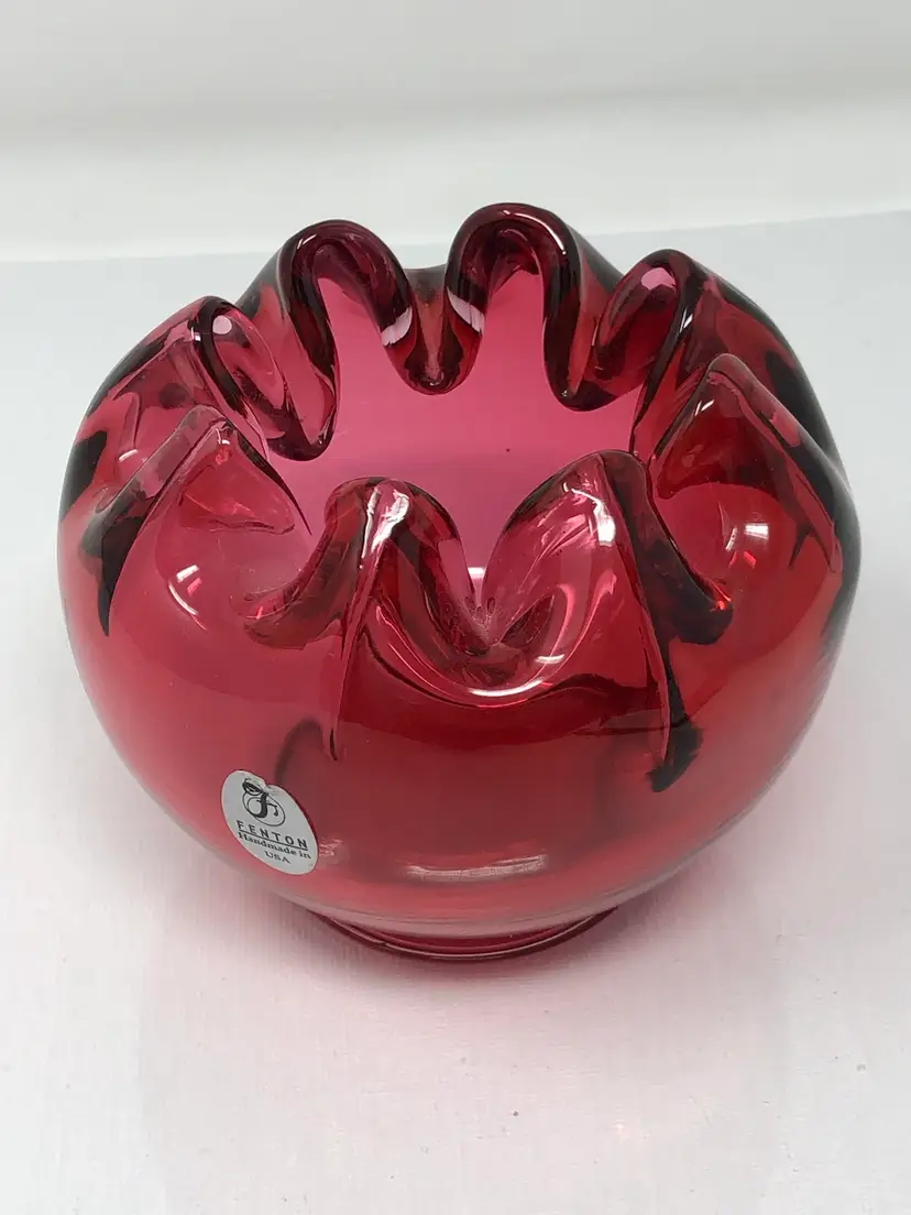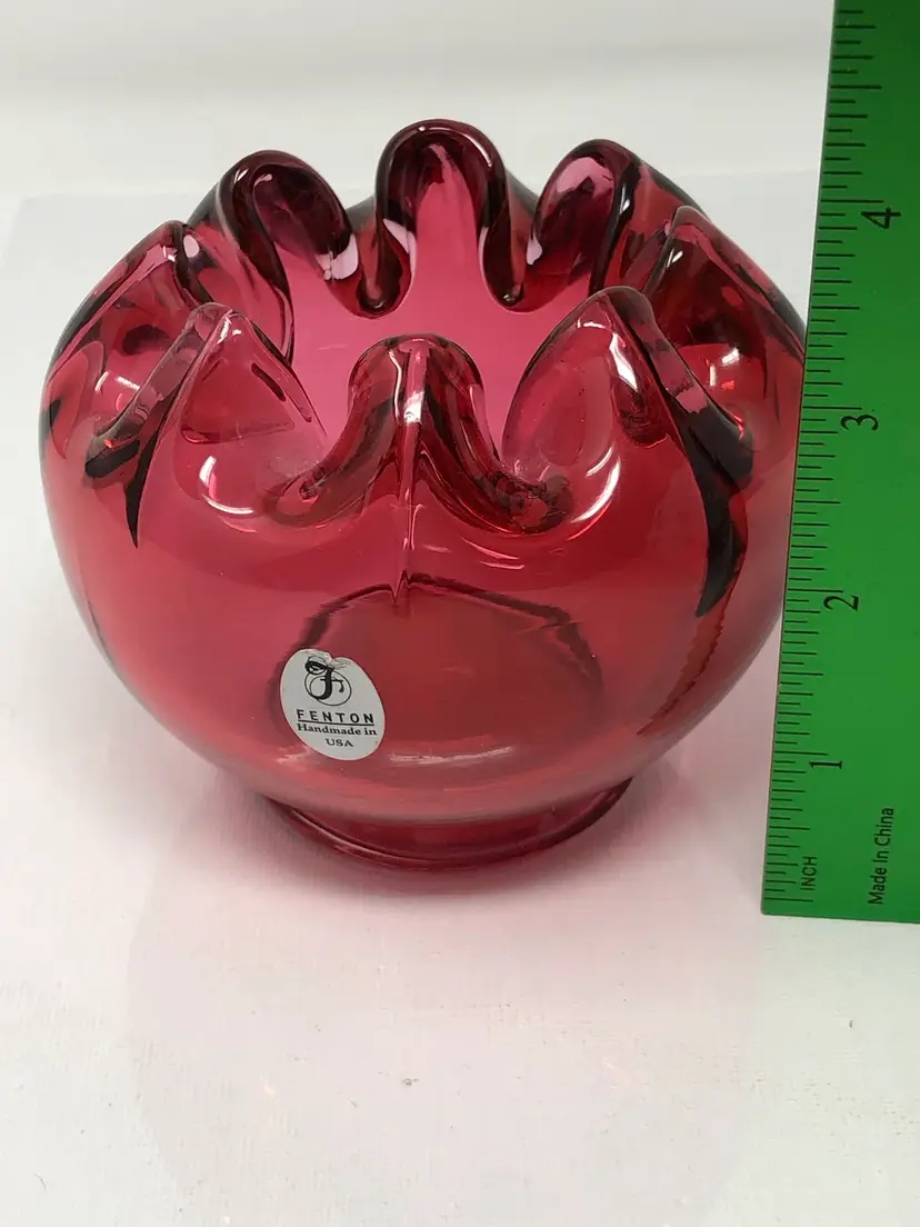 3 1/2" smooth glass rose bowl in ruby overlay. Original Fenton label no chips or cracks.