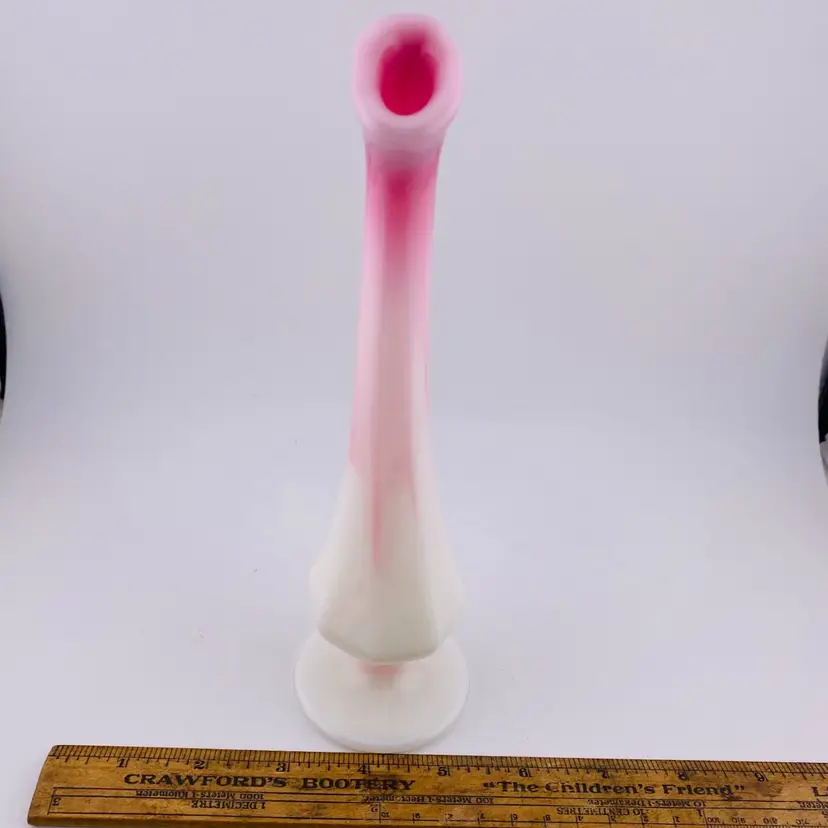 Fenton Glass Vase Rosaline Pink Swung 9” Retro Vintage
