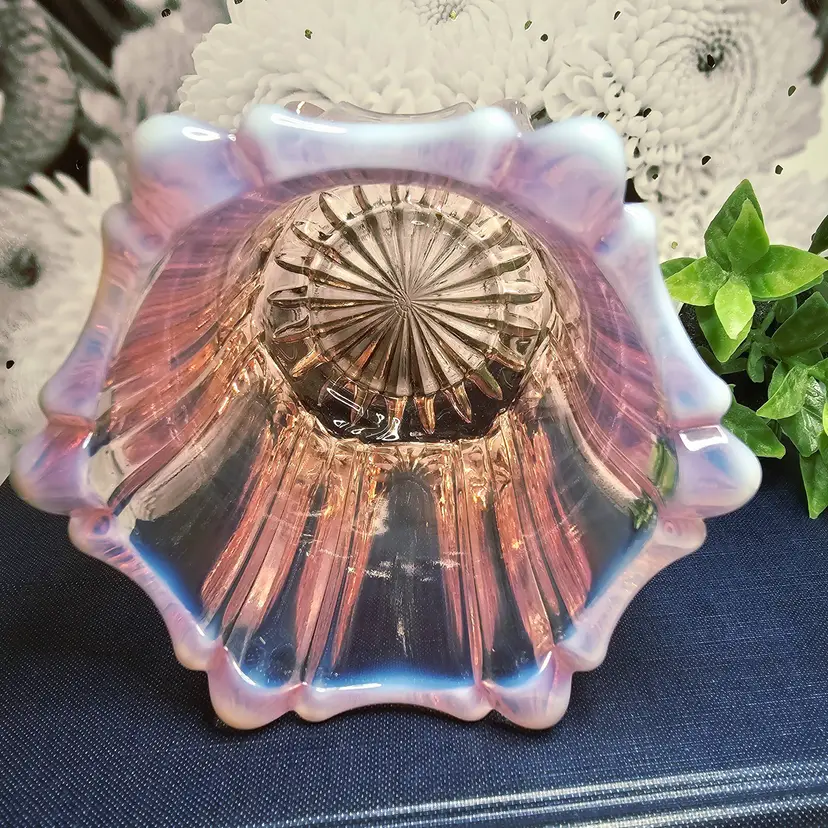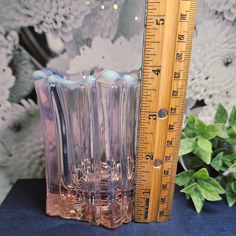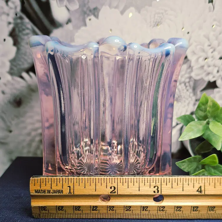 Lovely condition with no chips or cracks. There is a straw mark or maker's flaw from production. Shown in last photo. Multi-functional as a candle holder, vase, or to hold make-up brushes. Measures 4" wide x 4" tall. Weighs 1 pound, 7 ounces.