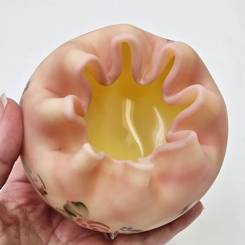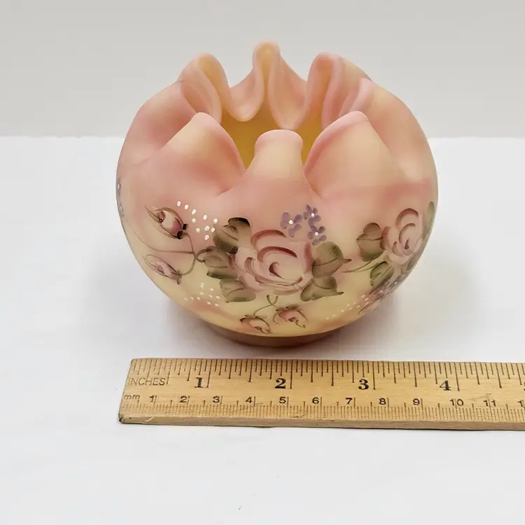 Fenton Burmese Glass vase, 3.5"x4", NO damage.