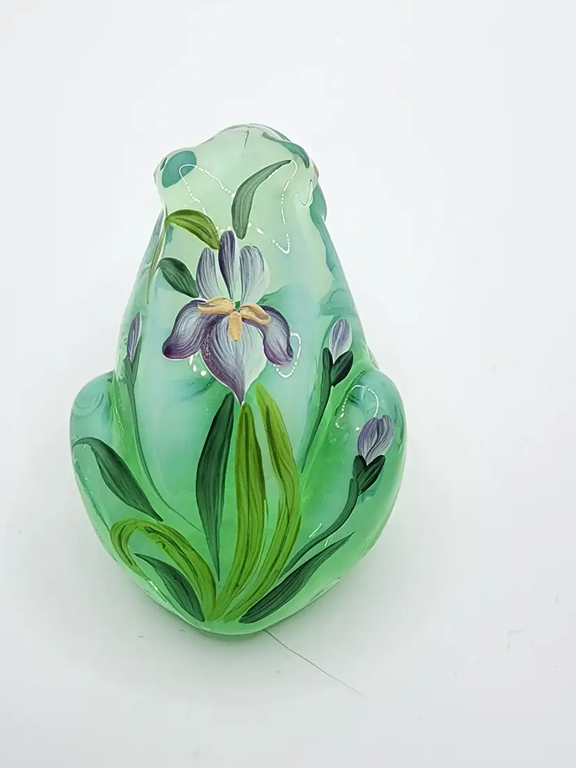 This will NOT GLOW. This cute frog has a beauty iris flower painting on it. It measures 2.5 inches in height