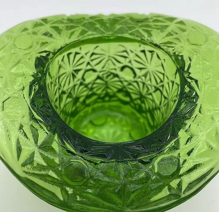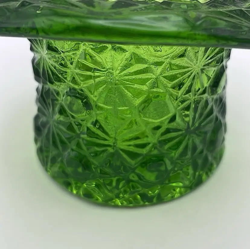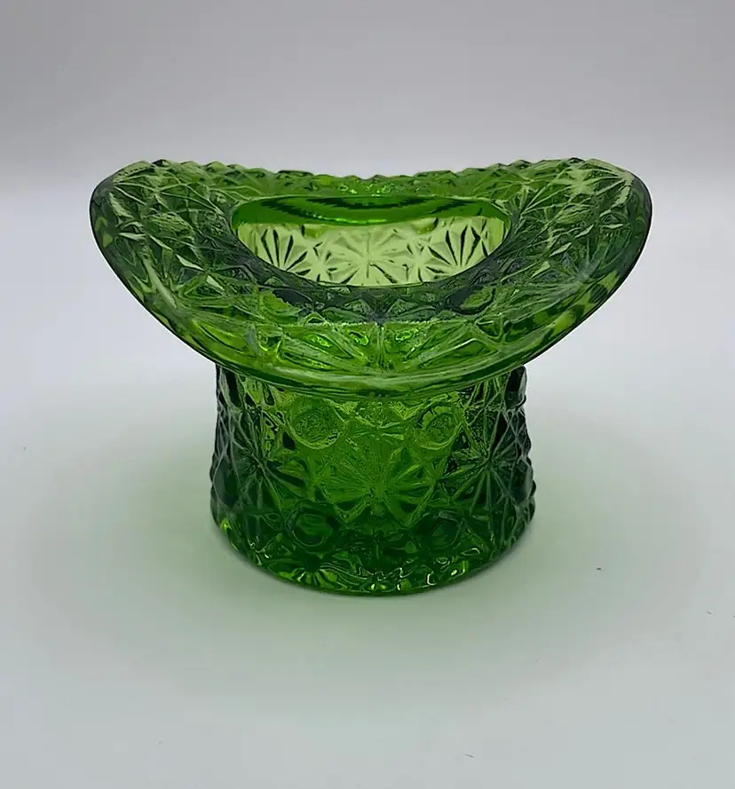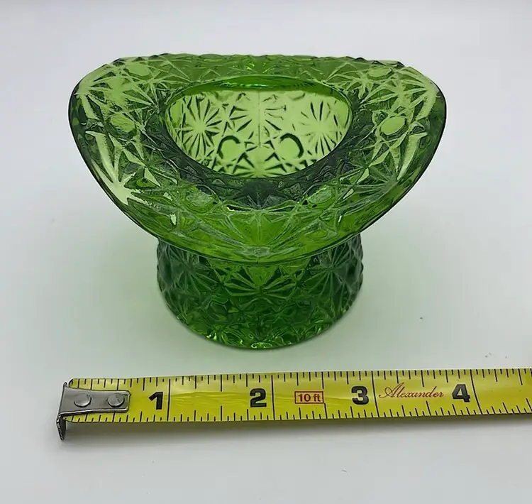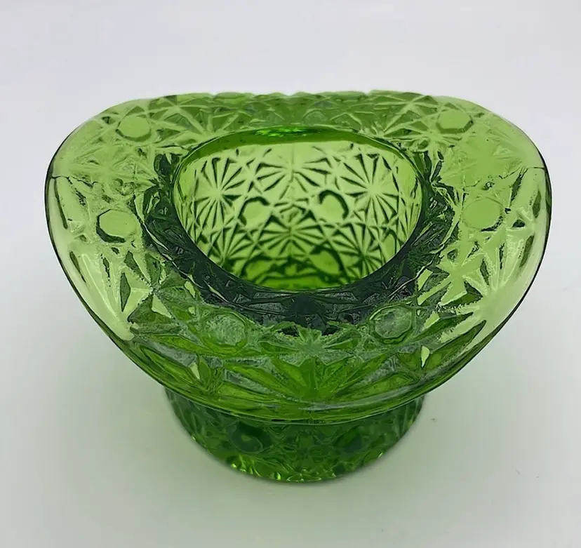 Fenton, Green Glass, “Daisy & Button”, Toothpick Holder, 2 1/2" Tall. Use for cotton swabs, hair pins, rings, etc on your vanity!