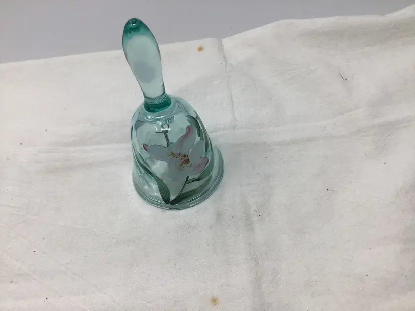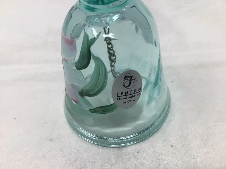 This is a great Fenton hand painted signed blue glass bell. It has a hand painted flower on the bell and is signed by artist W L Hart. It is blue glass and in great condition with no chips, cracks, or damage. It measure approximately 4 1/2” tall and 2 1/4” diameter. It is a great item and would be a great addition to any Fenton collection or bell collection.