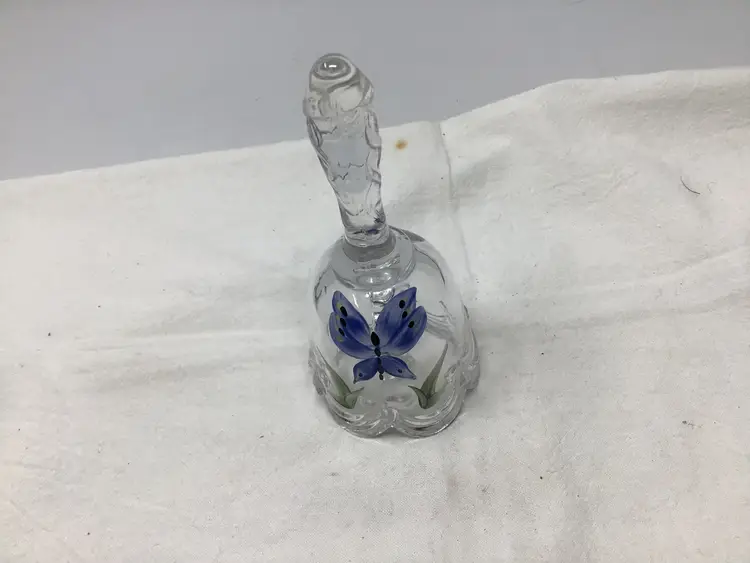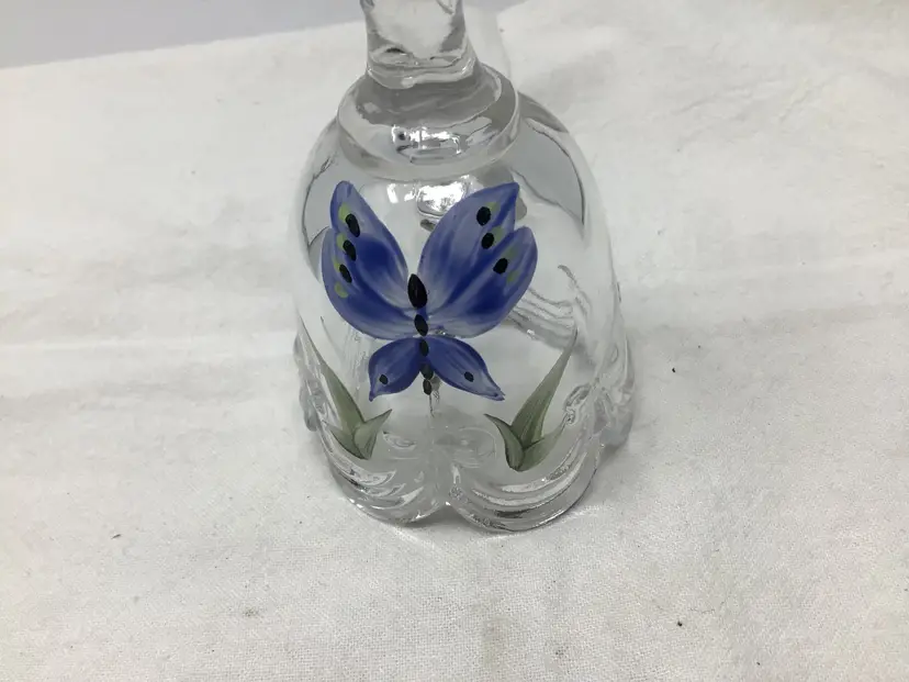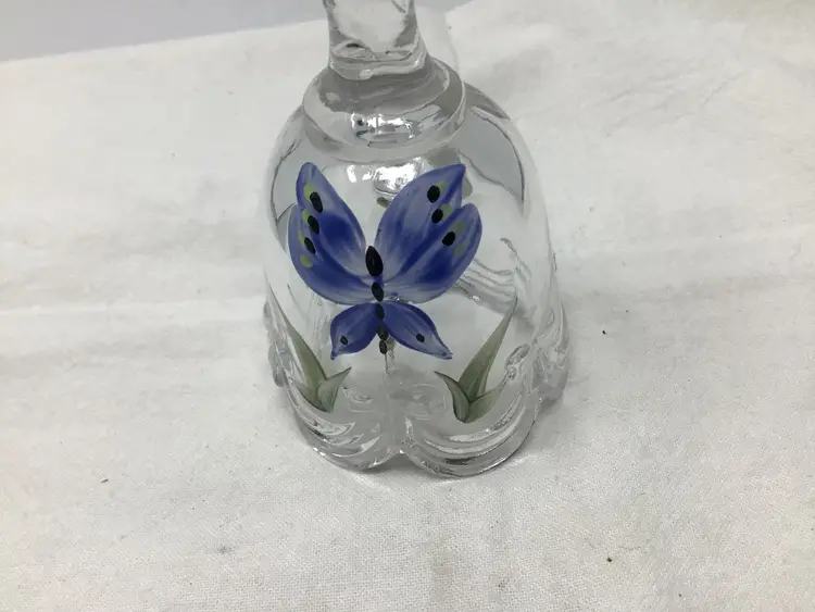 This is a great Fenton clear glass bell. It has a cute hand painted butterfly on it. It is sign B Williams on the inside lip of the bell. It has a scalloped bottom edge. It is in great condition with no chips, cracks, or damage. It measures approximately 4.5” tall and 2” in diameter. This would look great in a bell collection, or any Fenton glass collection. It does have a paper label as well. Thank you for shopping my item.
